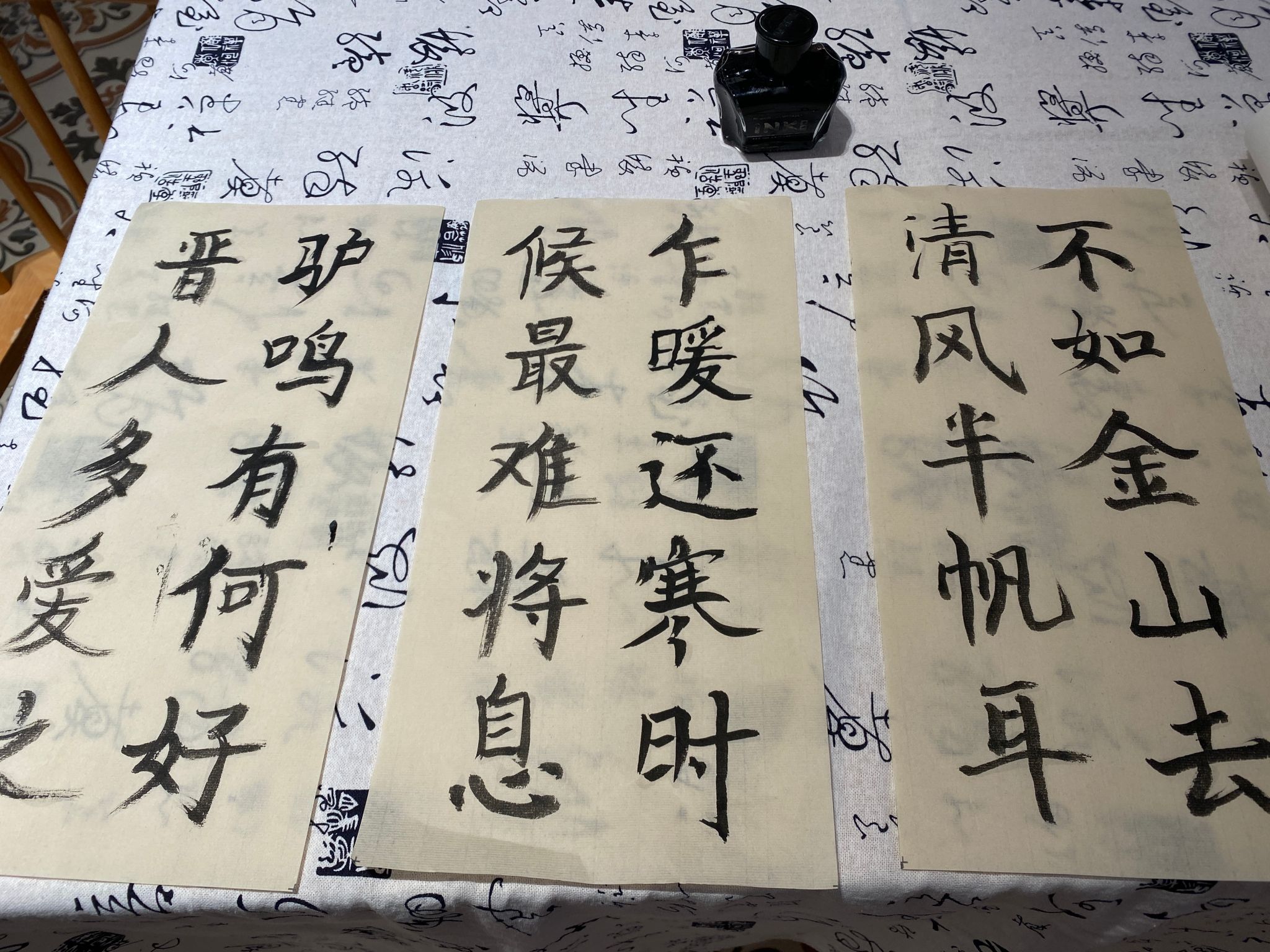 紧接着,主持人邀请书法特长同学担当“文化小导师”。大家拿到经典字帖,只见一些同学眉头紧锁,眼神专注,一笔一划临摹得细致入微;有的同学则在临摹时不小心沾了一手墨汁,引得周围同学轻声发笑,尴尬之余也为活动增添了一抹诙谐色彩。期间,小导师在同学们之间穿梭指导,耐心地纠正姿势与笔法。最后小组互评时,大家围坐一起,认真品鉴每一幅作品,最终选出的“墨韵佳作”在展示区熠熠生辉。