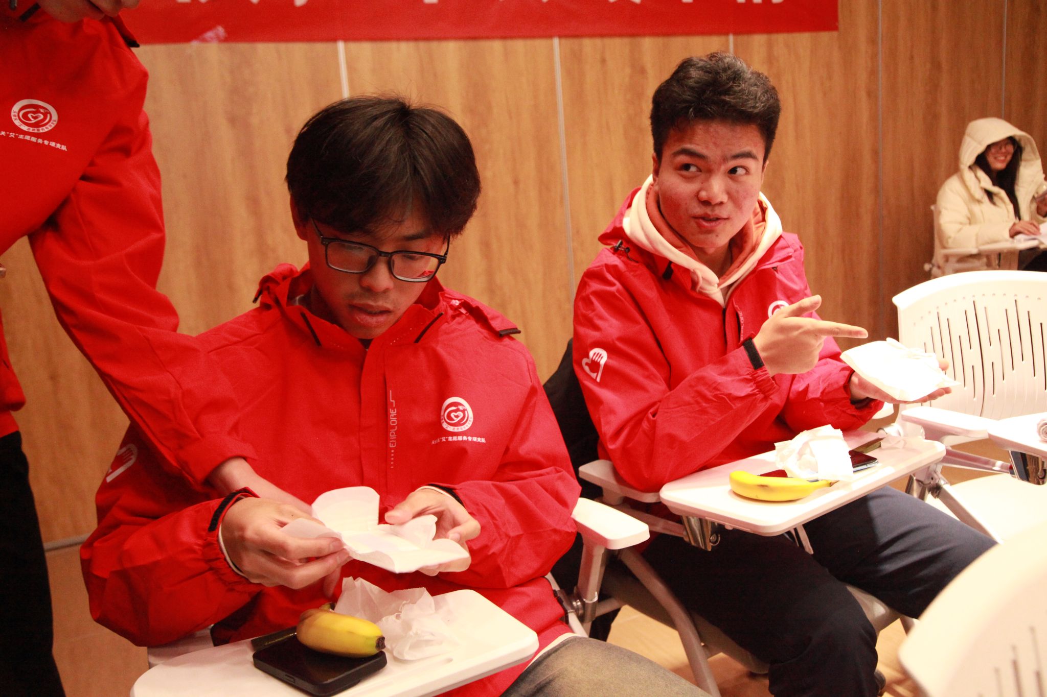 为让理论知识更加贴近实际,主持人和支队成员介绍了避孕套和卫生巾的正确使用方法,并进行现场示范。示范后每一位参与者都领取到了避孕套和卫生巾等物资并进行现场体验。同时主持人随机邀请一些参与成员上台,进行实际体验操作,工作人员在旁指导。