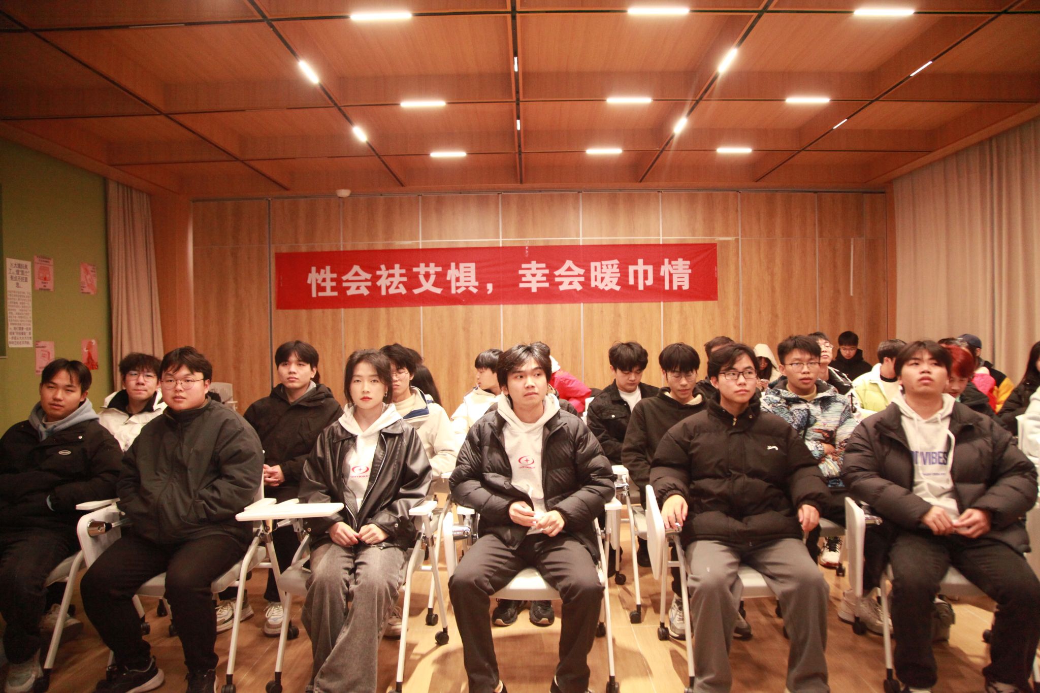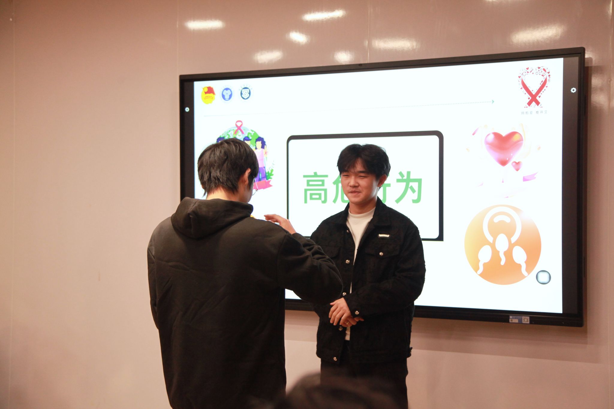 接下来,主持人播放的一个短片吸引了所有人的目光。这部有关性教育短片以生动形象的画面,传导了防艾滋病以及两性关系教育的重要意义。同学们全神贯注地观看,深受触动。在短片结束后,主持人组织了简短讨论,引导同学们分享自己的感受与体会。