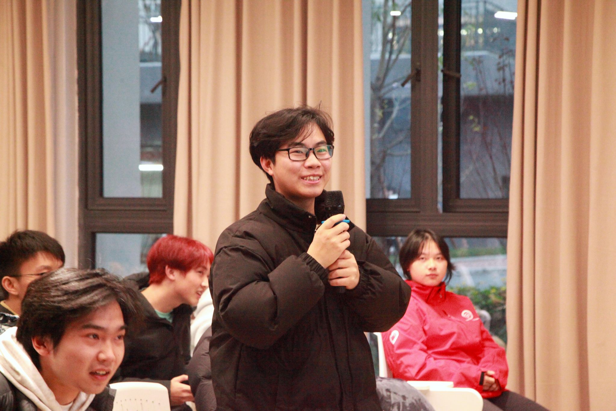 随后主持人又引出了“正话反说”小游戏,沉淀刚收获的知识,参与者分组后每两人一组进行游戏。屏幕会展示与防艾滋病或性健康有关的词语。猜测人背对屏幕,描述人根据屏幕词语进行语句或手势形容(不能含原词句),猜测人在规定时间内猜出并从尾字到首字倒述即可胜出。活动胜利者可获得精心准备的小奖品。场下成员在游戏巩固两性知识的同时,不亦乐乎。