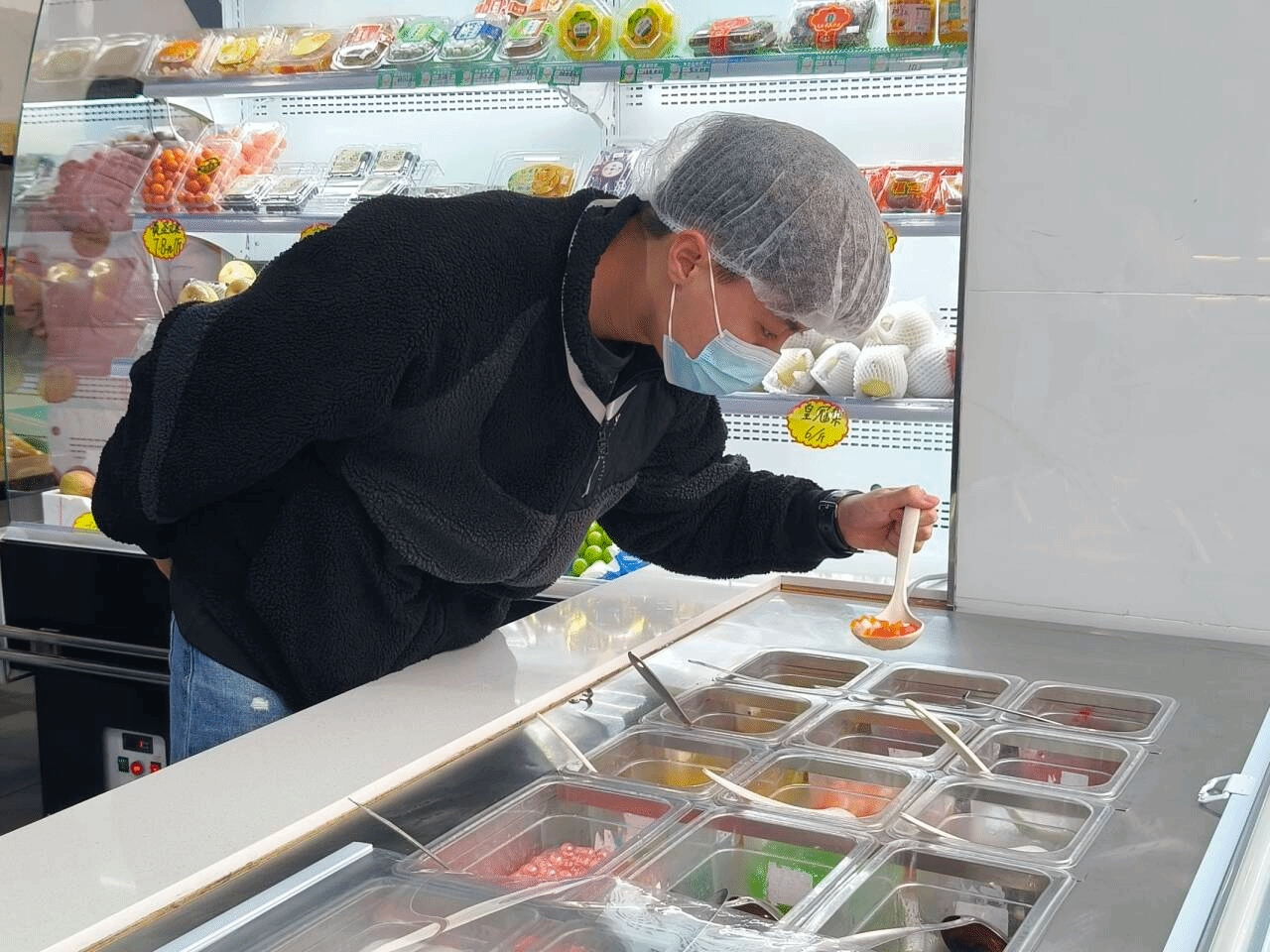 走进食堂的操作间和仓库,同学们在食堂负责人的指导下,化身专业的食品安全质检员,不放过任何一个角落,对物品摆放、食品新鲜度和卫生环境等方面逐一进行严谨的考察。后厨的整体情况是令人欣慰的,大多数区域呈现出环境整洁、食品新鲜的良好状态,碗筷和调料的摆放井井有条,在无声地诉说着食堂对于食品安全的重视。