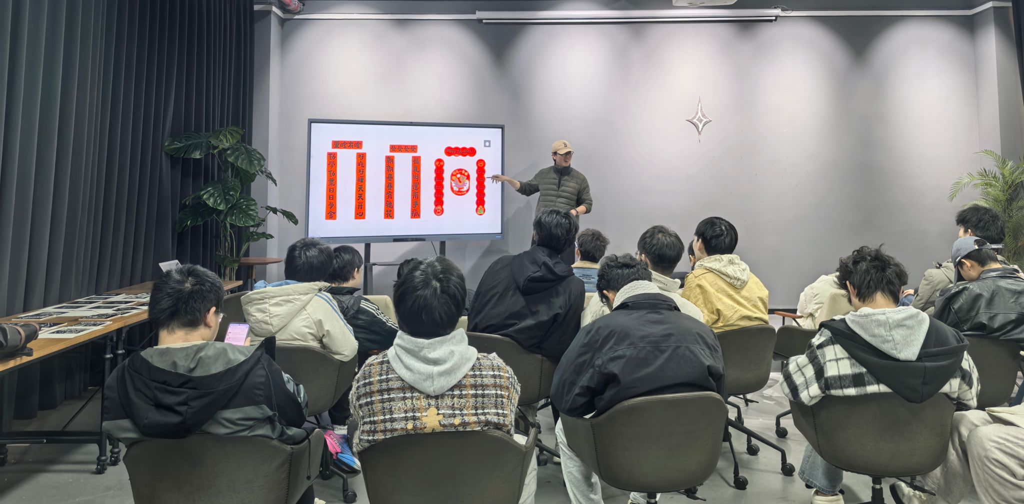 活动的初衷是为了让同学们在放假前,为自己的宿舍亲手写上一副对联,表达对新年的愿望和对自己的预期。王琎老师精心设计了五个互动环节,旨在让同学们深入了解春联的文化,并亲手体验创作的乐趣。