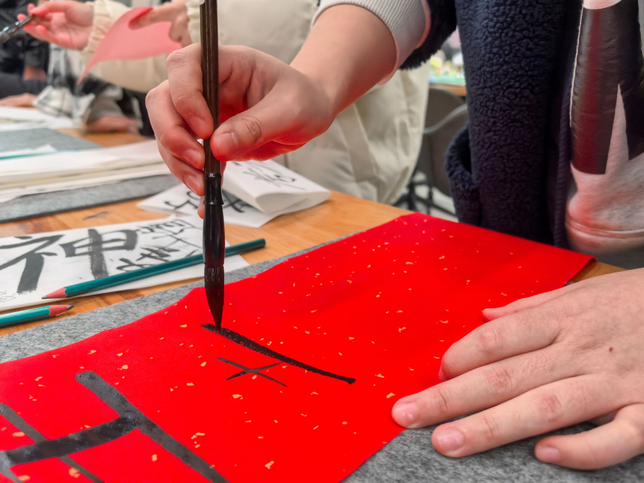 在自由创作环节,同学们的创意得到了充分的释放。他们创作出了千奇百怪、极具创造力的对联内容,用毛笔书写的过程中,不仅体验到了书法的魅力,也对传统文化有了更深的认识。活动结束后,同学们纷纷表示,这次写对联的体验非常独特,让他们对传统文化有了更多的了解。