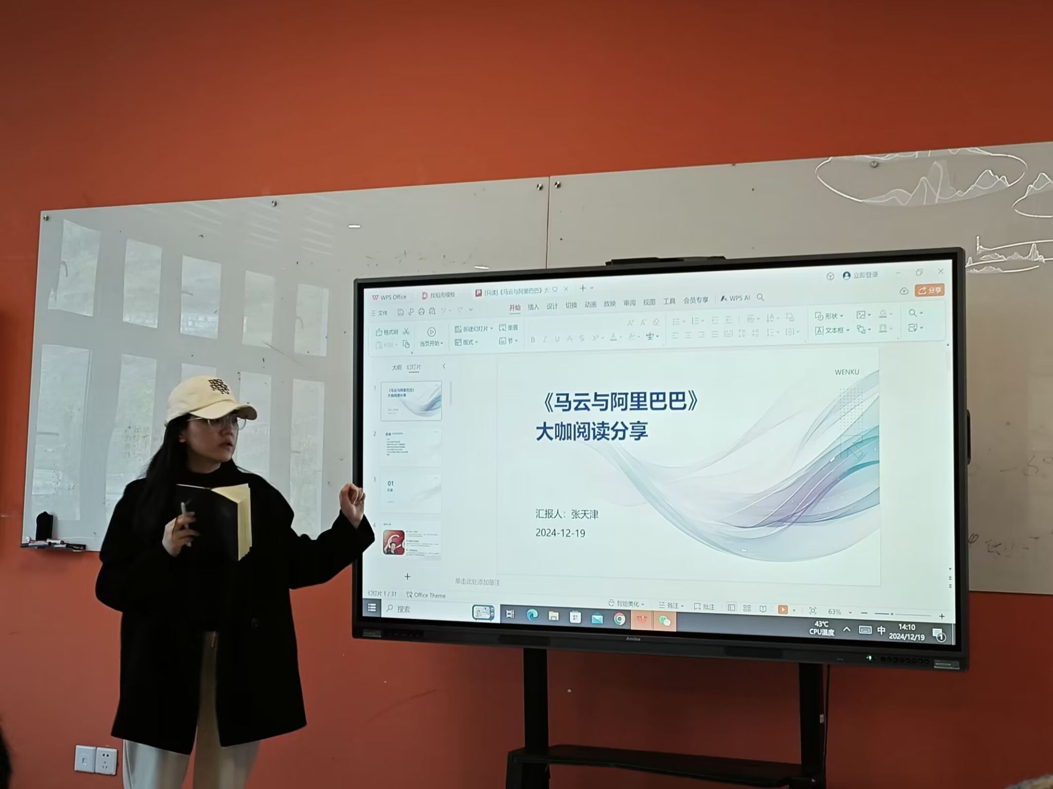 活动开始,张天津同学对《马云与阿里巴巴》进行分享。在全球商业的浩瀚星空中,有一颗璀璨夺目的巨星——阿里巴巴,而其背后的传奇缔造者马云,更是一位备受瞩目的商业巨擘。从一间不起眼的办公室起步,到打造出一个改变世界贸易格局的电商帝国,马云与阿里巴巴的故事,充满了创新、挑战与突破。也让大家对创业的历程有了新的认知。