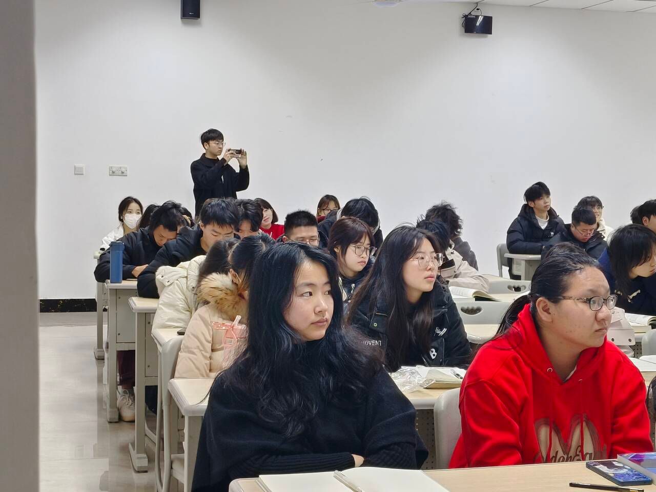 课堂秩序总体良好,大部分学生们都能够遵守课堂纪律,认真听讲,仅有个别学生出现玩手机、睡觉等现象。对于这些学生,辅导员会根据具体情况与学生进行谈心谈话,了解原因并给予相应的教育和引导。同时,任课老师也通过多样化的教学方法来提高学生的参与度,增加课堂的趣味性和吸引力,同时也会改进教学方法,加强对课堂纪律的管理。