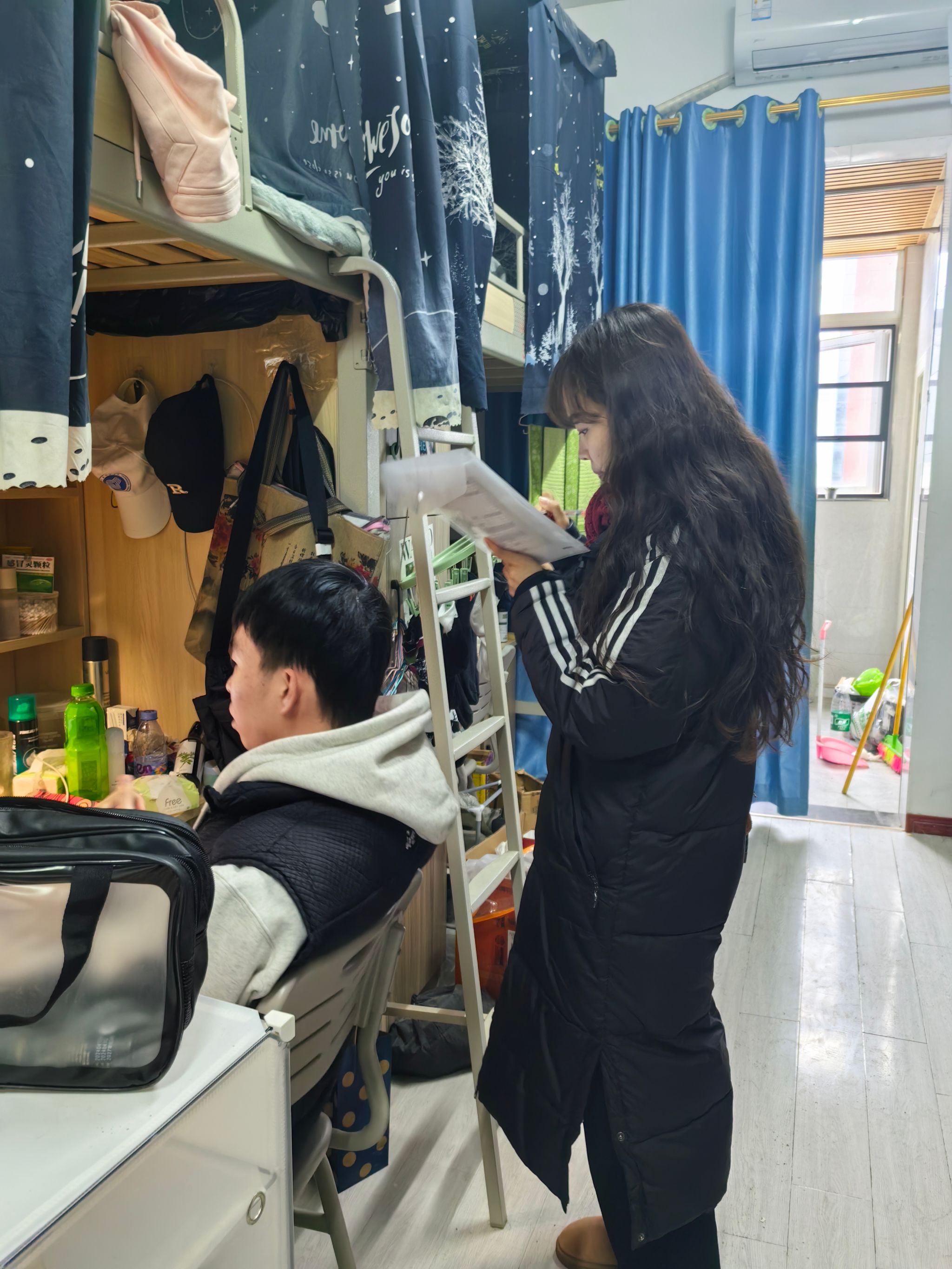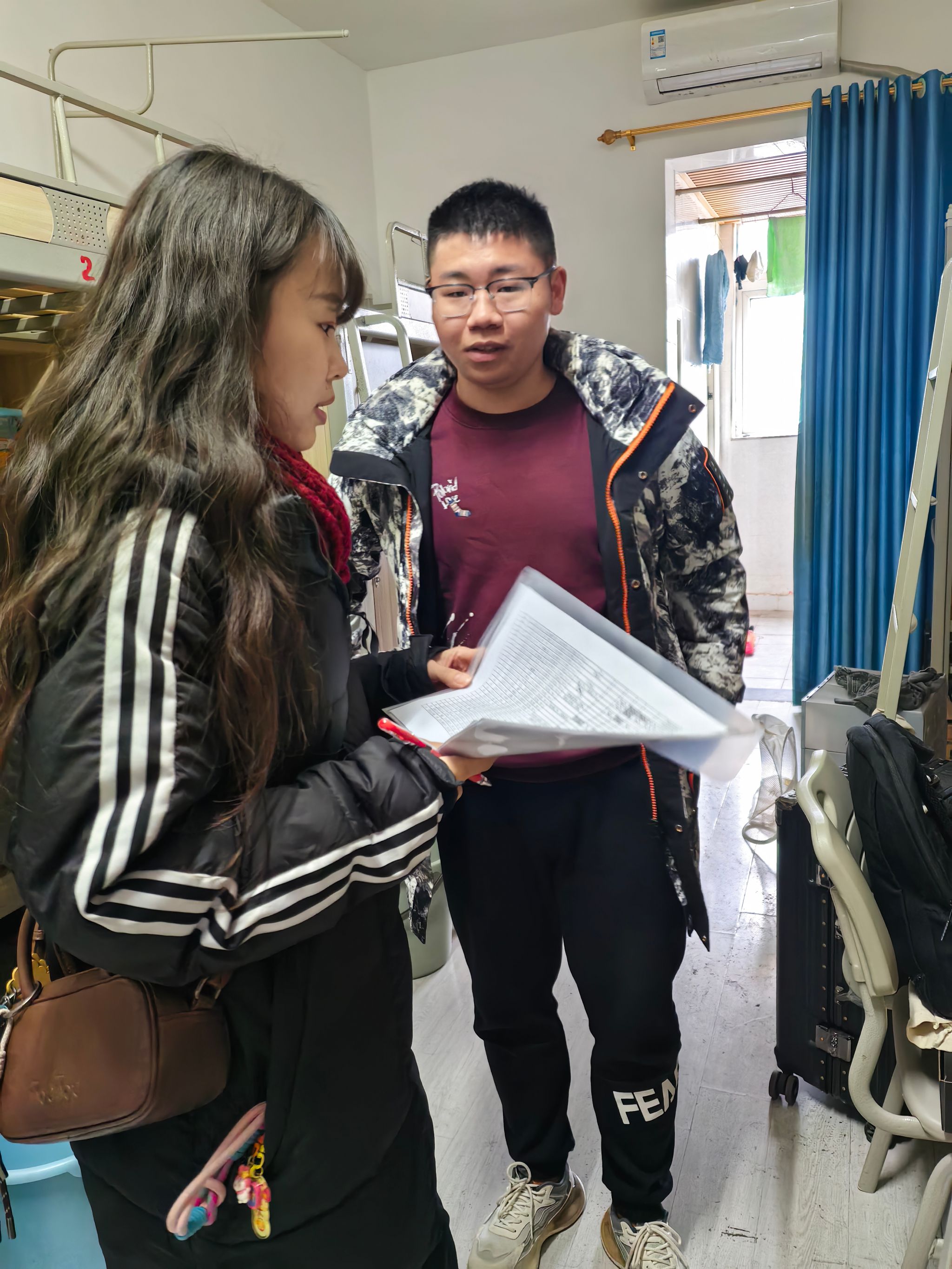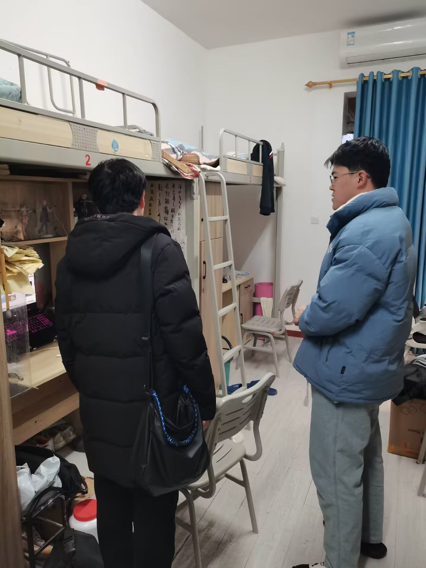 为确保新学期学生返校工作顺利开展,了解学生返校情况和思想动态,营造新学期良好的学习生活氛围。2025年2月23日下午,信息安全学院学工副院长尹金维、学工办主任邹健带领全体学工辅导员深入学生宿舍及时了解学生的返校情况和生活状况,并关怀大四学生考研、考公及就业情况。