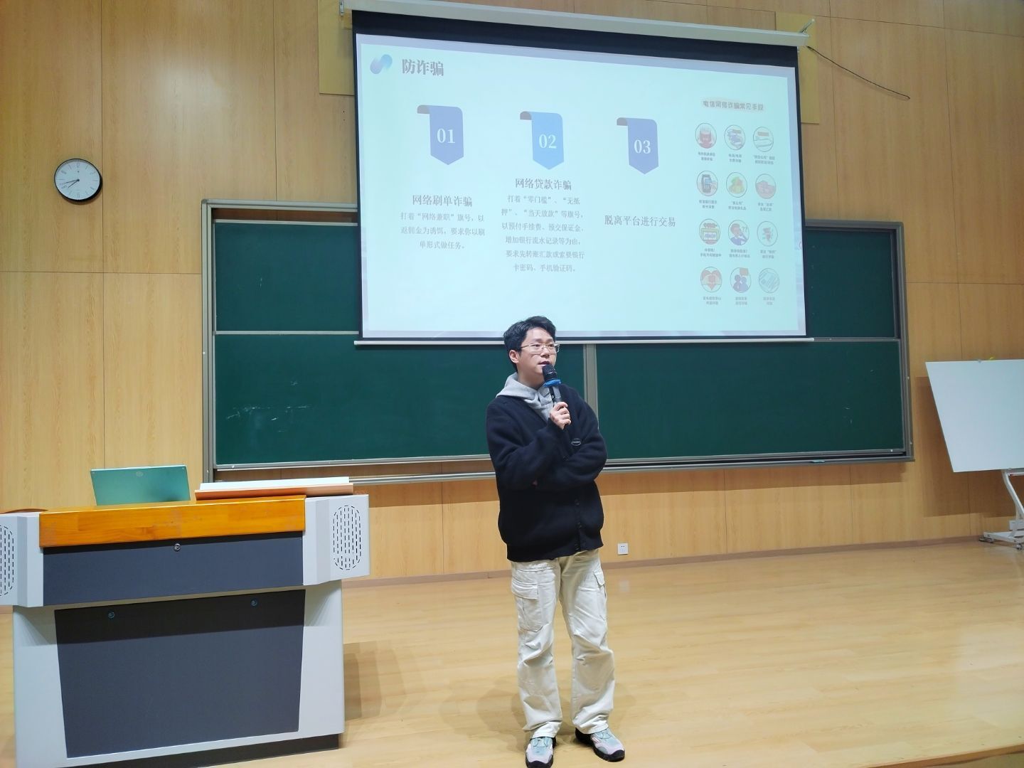 近年来,校园贷、网络诈骗等事件频发,大学生群体是一个易被骗的群体。温朝一老师结合自身工作经验,向同学们详细讲解了防范校园贷和网络诈骗的相关知识。他提醒同学们要树立理性消费观念,增强风险防范意识,远离校园贷和网络诈骗,保护自身财产安全,强调天上不会有掉馅饼的事情发生,提出大学生四“不要”法则。