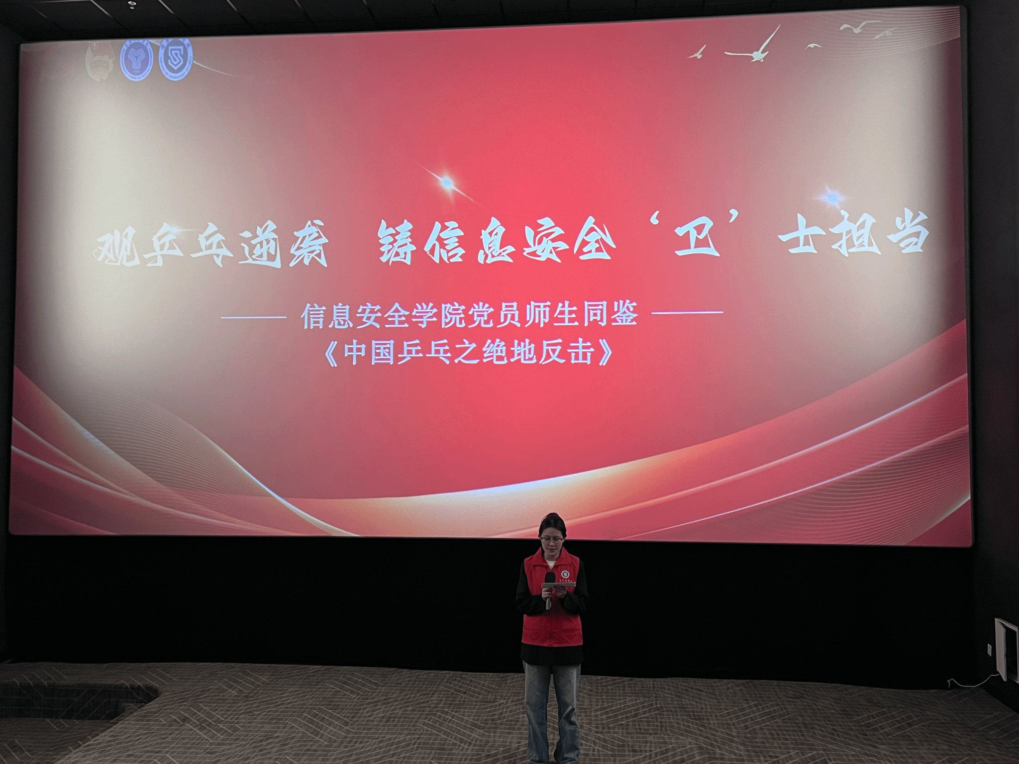 2025年3月5日,信息安全学院学生党支部携手“红帆飞扬”宣讲志愿服务专项支队,在万画影城5号厅举办了“观乒乓逆袭,铸信息安全‘卫’士担当”观影活动。此次活动旨在借助电影《中国乒乓之绝地反击》的震撼力量,点燃同学们在信息安全领域内的昂扬斗志与责任担当的火花。
