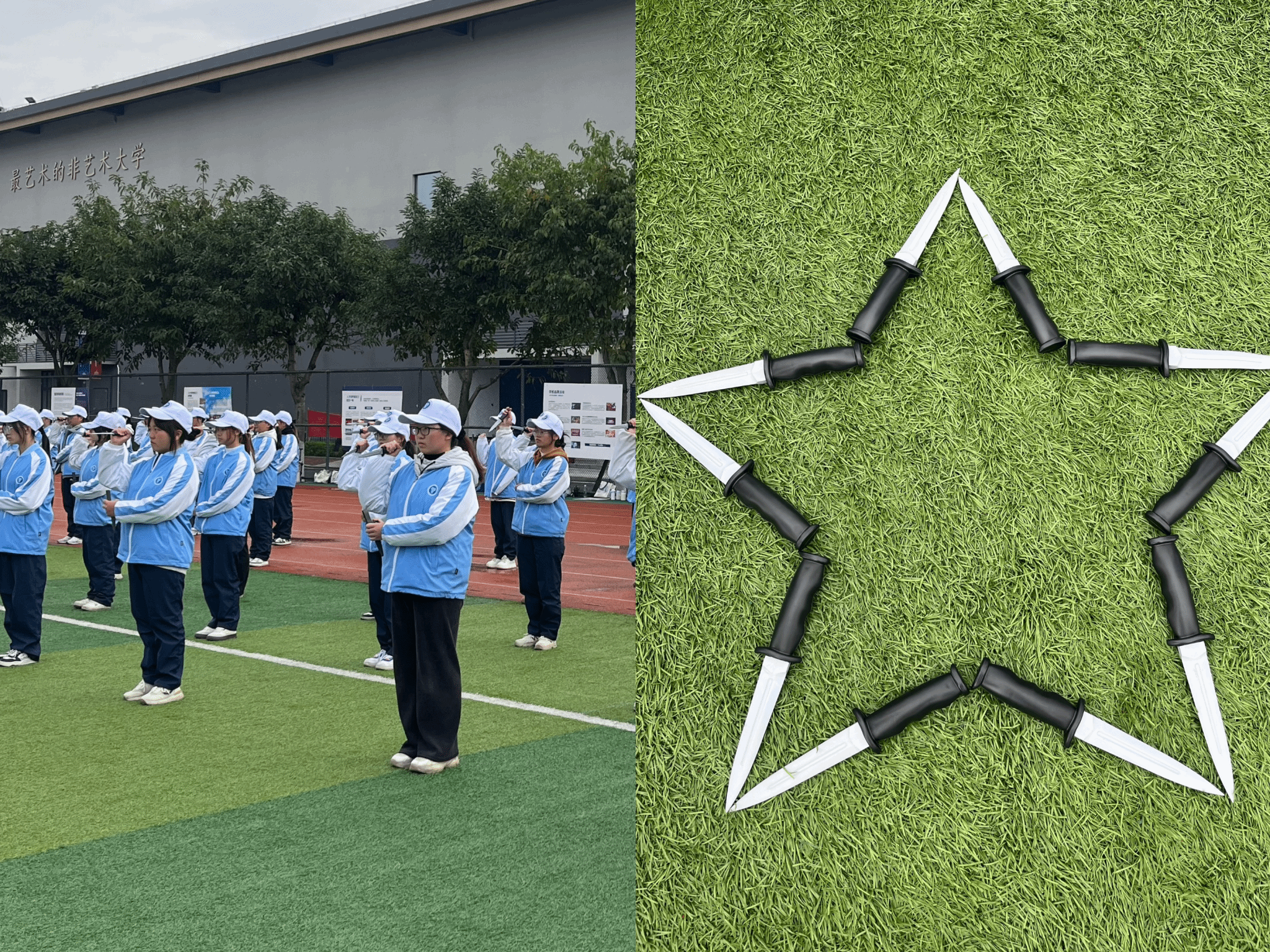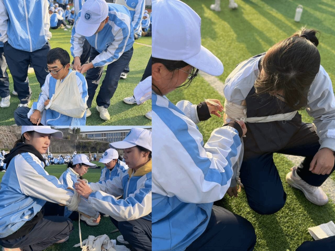 春寒之下,没有一人退缩,同学们用行动宣告着,定要冲破艰难,书写属于自己的荣耀篇章!训练场上,各个连队划分成不同方队,有匕首操、军体拳、战术等。练匕首操的同学,动作迅猛干脆,寒光闪烁间尽显巾帼不让须眉、男儿英勇无畏的气魄;打军体拳的方队,一招一式刚劲有力,吼声震天,拳风呼啸仿佛能划破空气;战术方队的同学,猫着腰在模拟场地灵活穿梭,时而卧倒,时而跃进,配合默契,尽显战术素养。进行包扎训练的同学们认真专注,手法由生疏逐渐变得熟练,互帮互助间,为守护彼此安全做足准备。他们在各自方队中刻苦训练,为集体荣誉全力以赴。