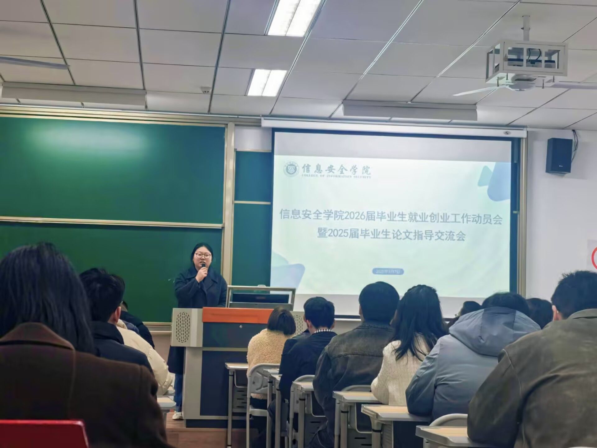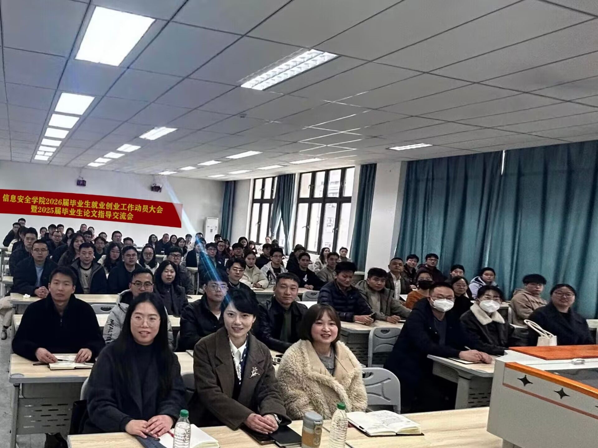 为助力信息安全学院学子明晰职业方向,提升就业竞争力,同时保障毕业论文质量,2025年3月7日下午13:00-15:00,信息安全学院于行者楼309开展2026届毕业生就业创业工作动员大会暨2025届毕业生论文指导交流会。信息安全学院院长王宁、学工副院长尹金维、教学副院长周小艳、各教研室主任、学工办主任、团总支书记、就业创业工作办公室主任、2025届毕业生毕业设计指导老师以及2025届和2026届毕业生辅导员共同参会,共商毕业生就业创业工作和毕业论文指导相关事宜。