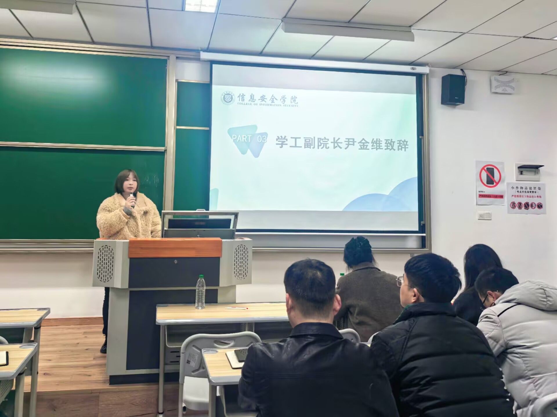 随后,学工副院长尹金维从学生管理视角,对2025届、2026届毕业生就业工作全面部署。她指出,毕业班辅导员要重点关注学生毕业就业情况,跟进毕业论文进度,关心毕业去向,加强沟通。在思想与心理层面,要强化教育和辅导,开展主题活动帮助学生树立正确就业观,及时疏导就业焦虑,激发学生就业动力。此外,尹副院长还强调就业“四不准”原则,要求全院老师严肃就业风气,工作细致严谨,杜绝原则性错误,为2025届、2026届毕业生就业筑牢基础,助力学生发展。