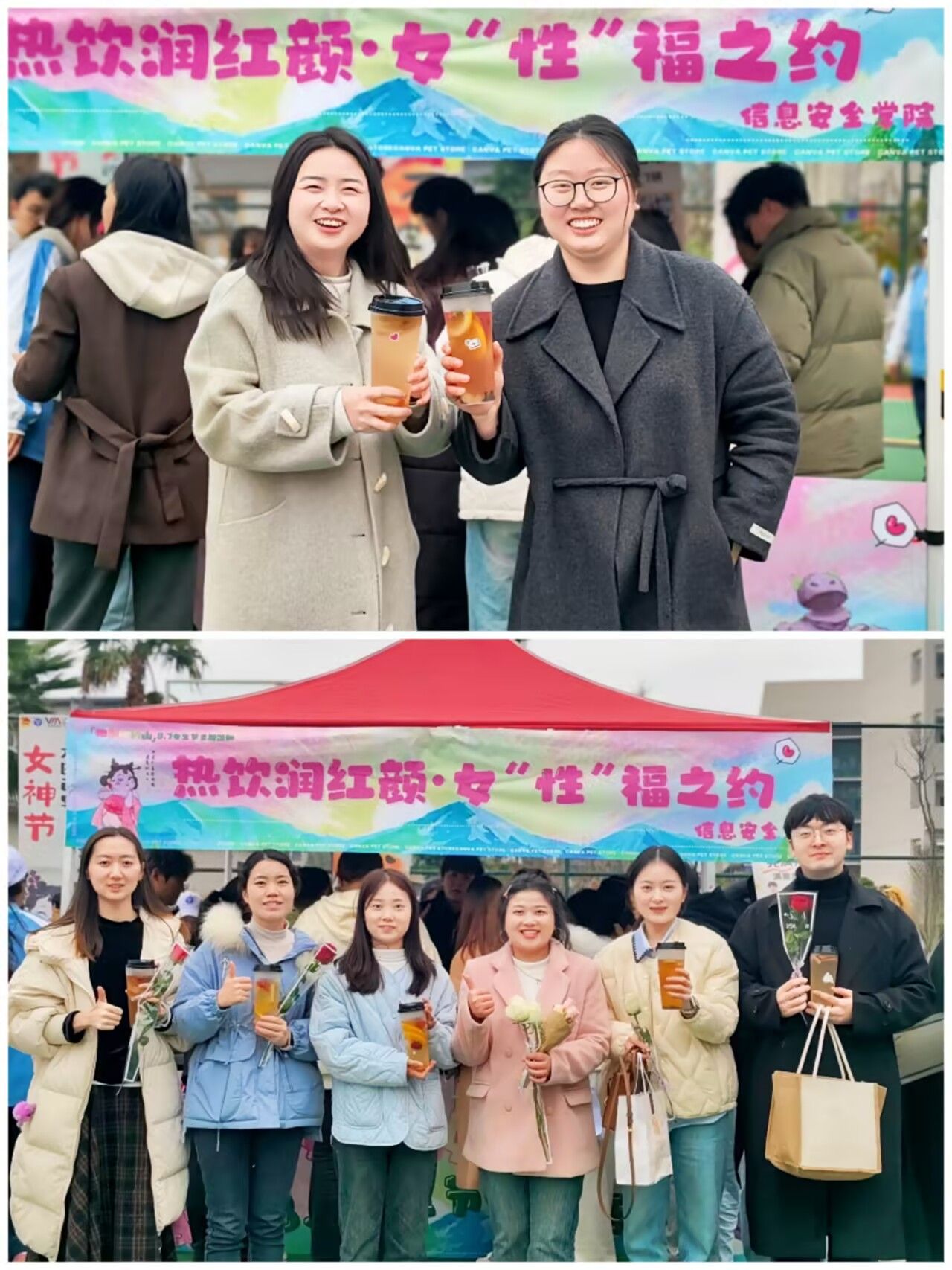 在这个春光明媚的三月,我们欢庆着专属于每一位女性的光辉节日。为庆祝这个特殊的日子,传递对女性健康的关怀与支持,3月7日,由信息安全学院权益生活部主办,一场以“热饮暖身·她的专属宠爱”为主题的三八妇女节特别活动,在行者楼前篮球场上暖心上映。
