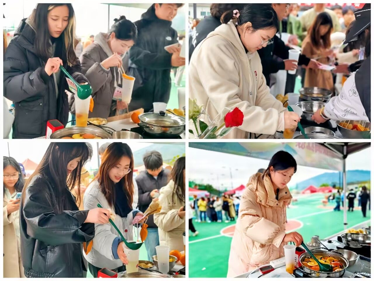 在摊位负责人的悉心指导下,参与者们纷纷动手尝试,随着一阵阵诱人的香气弥漫开来,一杯杯热腾腾的饮品在大家的巧手下诞生。有清新的水果茶,有浓郁的水果花茶,还有将多种食材巧妙融合、大胆创新调制出的独具风味的热饮。每一杯热饮都蕴含着参与者的心意和创意,成为了这个节日里一道亮丽的风景线。