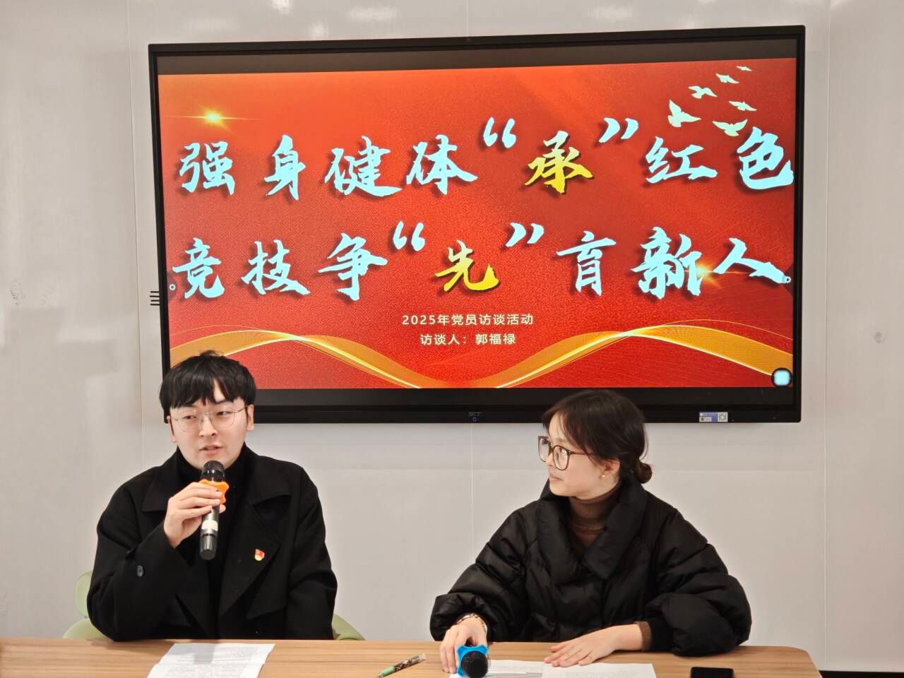 为充分发挥党员先锋模范作用,弘扬新时代党员精神,2025年3月7日,信息安全学院学生党支部在南江书院博学悦享互动空间举办了强身健骨承红色·竞技争先育新人——党员人物专访第四期活动。本次活动聚焦信息安全学院2023级辅导员兼竞技体育板块指导老师——郭福禄老师,深入挖掘他在工作岗位上践行党员精神的故事。