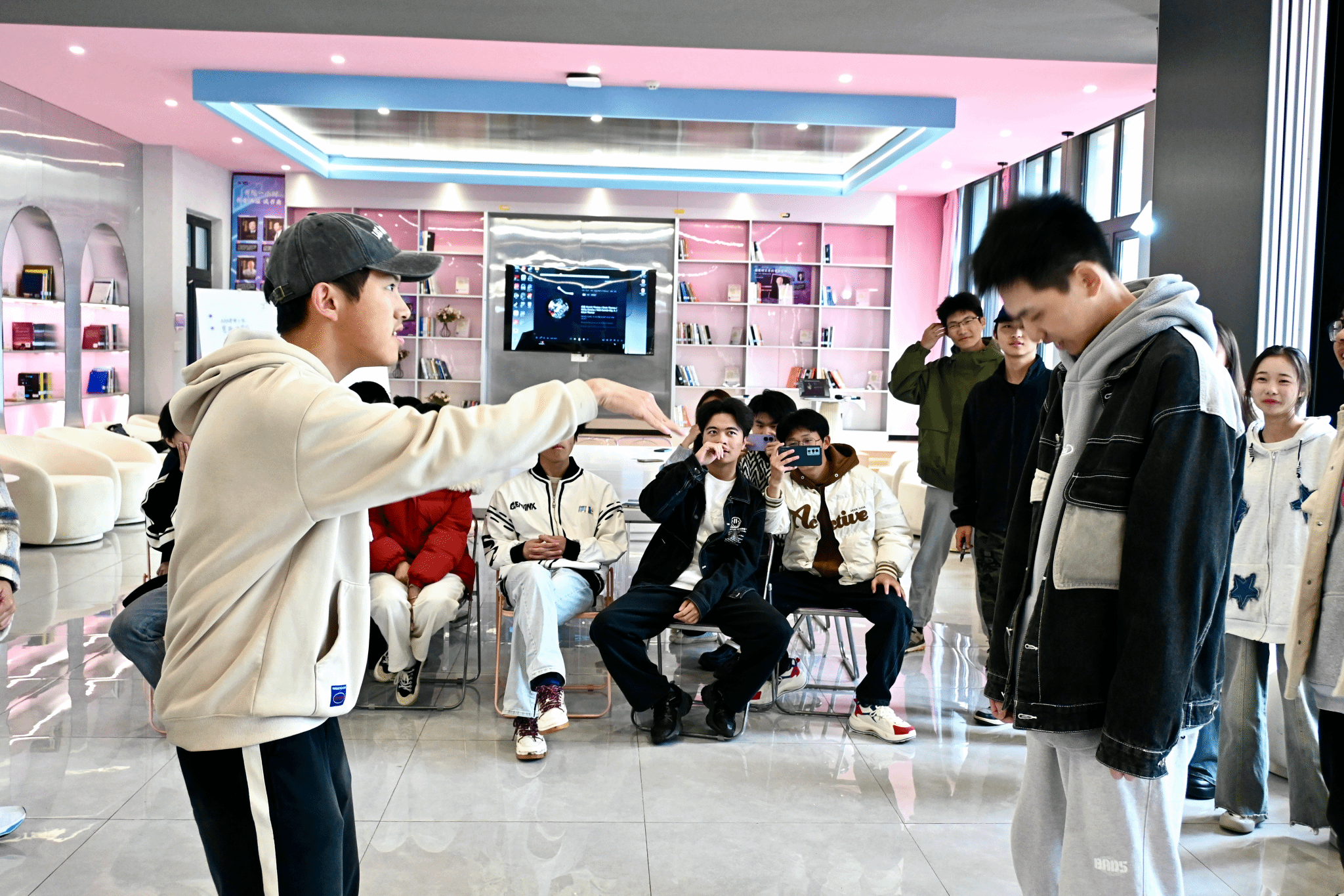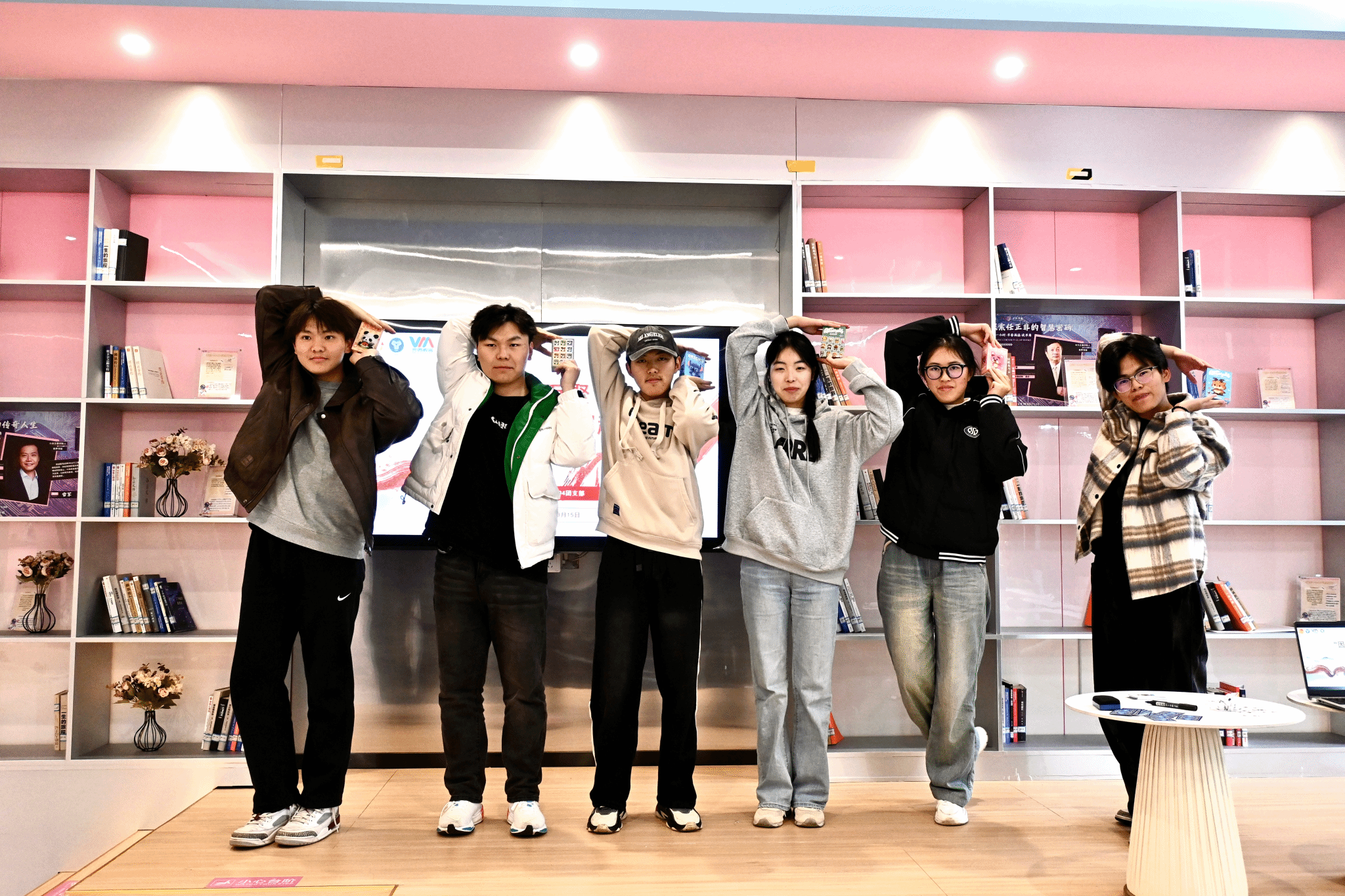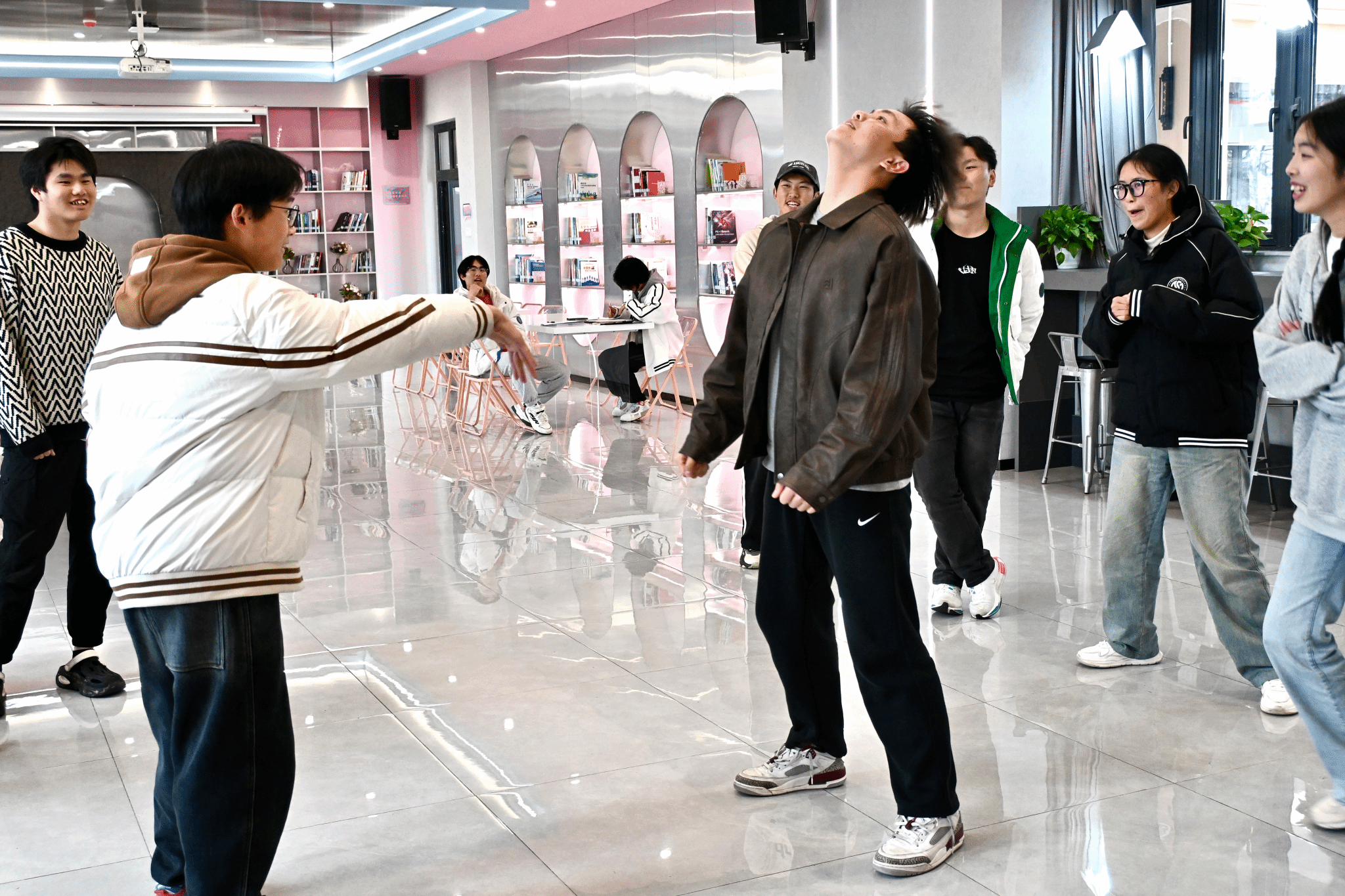 第一个游戏“woah手势游戏”迅速点燃了现场气氛。两个小队面对面站成一列,随着《woah》歌曲的动感旋律响起,同学们通过石头剪刀布决定游戏的主动权。游戏中,同学们全神贯注,每当歌曲出现“woah”时,双方队员迅速做出挥手或摆头的动作,若动作一致则淘汰对方队员,不一致则交换主动权。现场气氛紧张而刺激,同学们的欢笑声、加油声此起彼伏,为这场节奏与心理的双重较量增添了不少趣味。最终“AAA建材小队”默契的配合和出色的节奏感赢得了本环节的胜利。