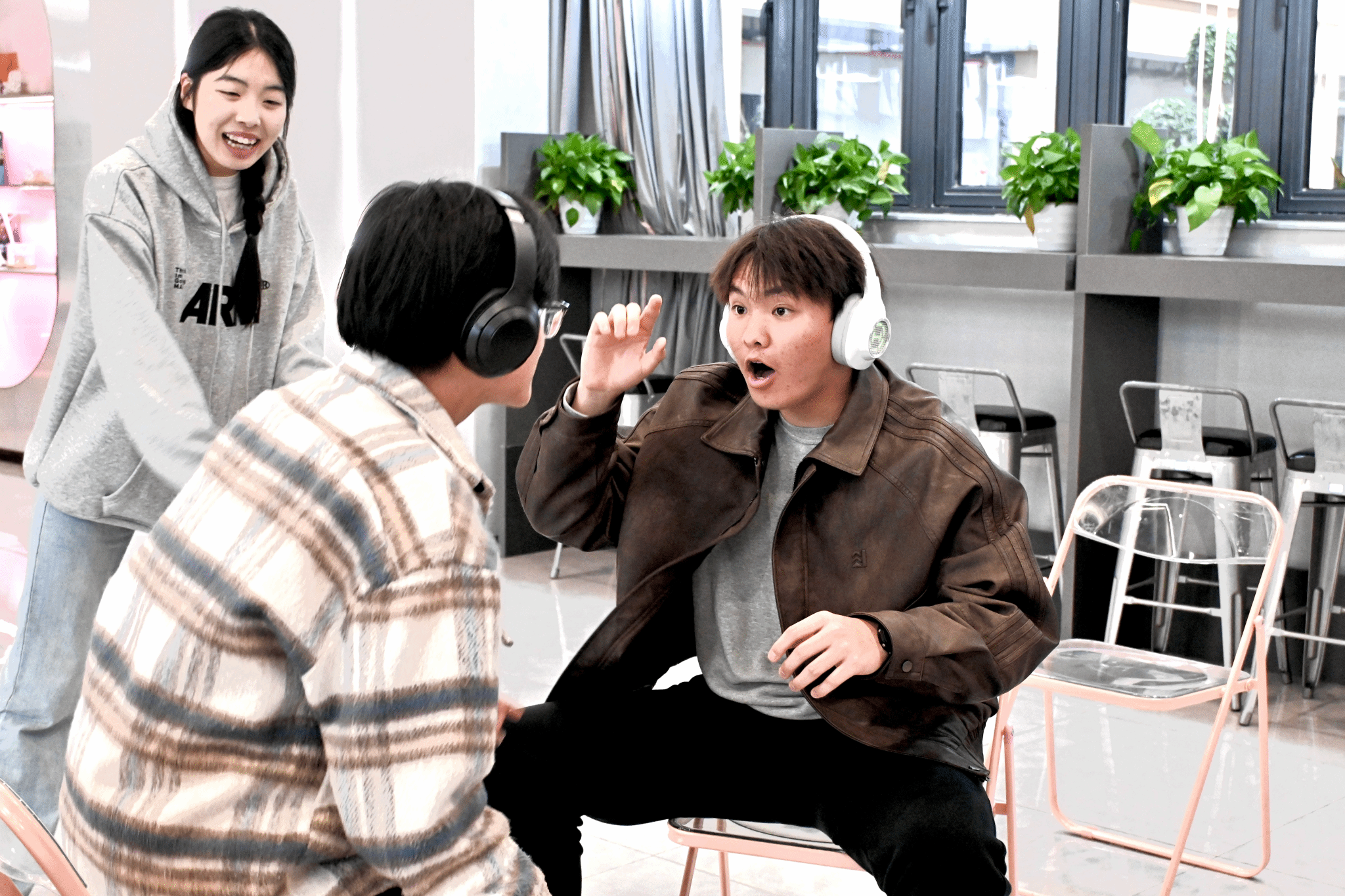 最后一个游戏暴走唇语,考验了同学们的观察与理解能力。全员佩戴耳机,小队一名成员领取题目后依次向后传递,只能通过口型和肢体语言进行传递。最后一名成员根据接收到的信息猜出题目内容,答对字数最多的小队获胜。在游戏中,同学们充分发挥自己的想象力和创造力,通过各种方式传递信息,现场充满了欢声笑语。他们夸张的口型、生动的肢体动作,引得大家捧腹大笑,而最终的答案揭晓时刻,又让大家悬着的心瞬间落地。有的同学在传递信息时绞尽脑汁,有的同学在猜测答案时灵机一动,整个过程充满了惊喜与欢乐。最终,“AAA建材小队”凭借出色的观察力和团队默契,答对了最多字数,获得了游戏胜利。