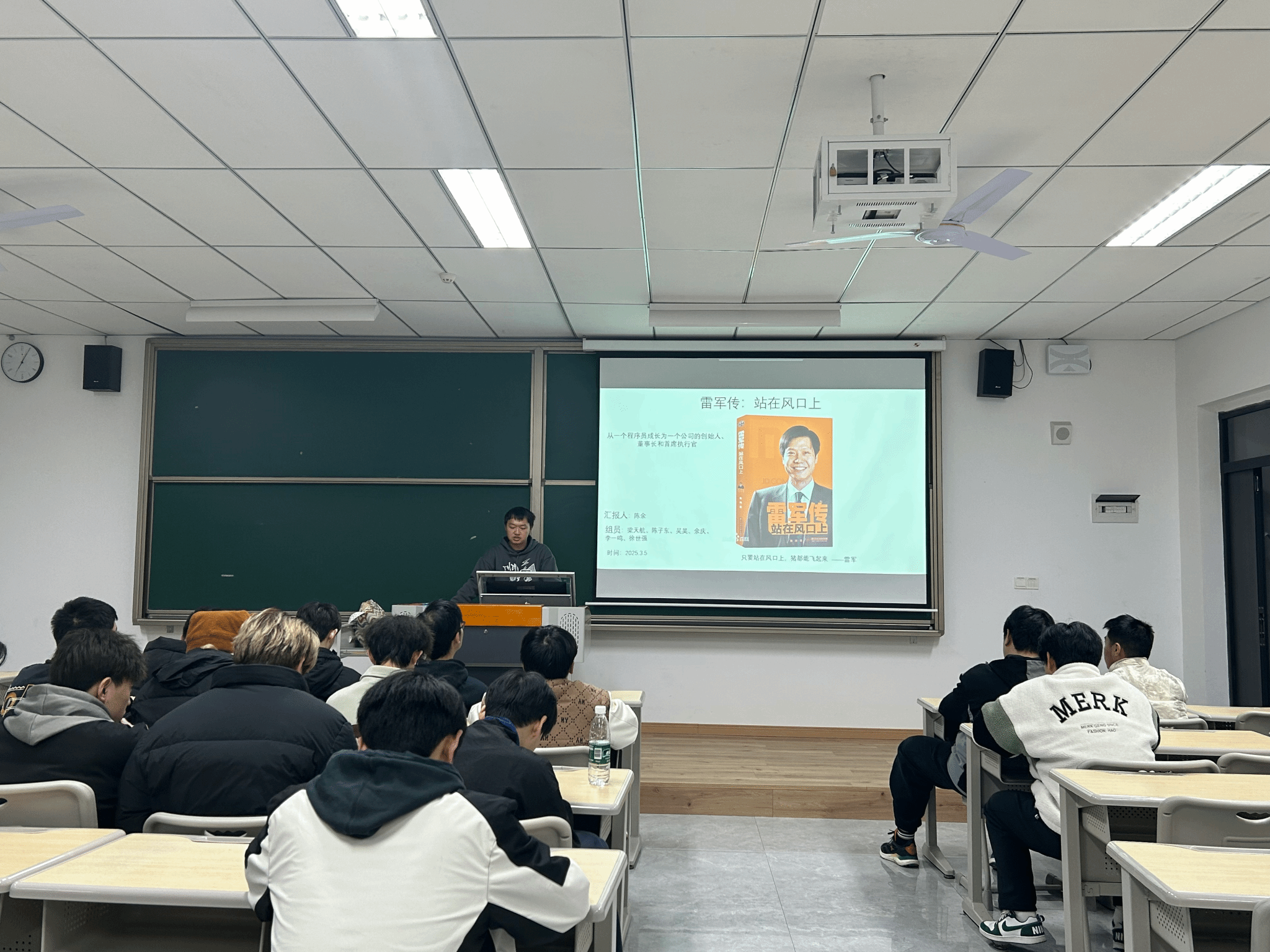 为积极响应学校“信息产业大咖传记阅读计划”,推动学生积极阅读大咖传记,领悟人生发展的智慧。2025年3月5日,异科导师覃志蓉组织2023级软件工程10-11班部分同学在行者楼104开展了以“品大咖经典 启智慧新思”为主题的大咖阅读分享活动。本次活动由陈余与徐世强两位同学进行分享,围绕雷军的创业哲学与小米集团的崛起历程展开深度对话,解码雷军与风口哲学的碰撞。