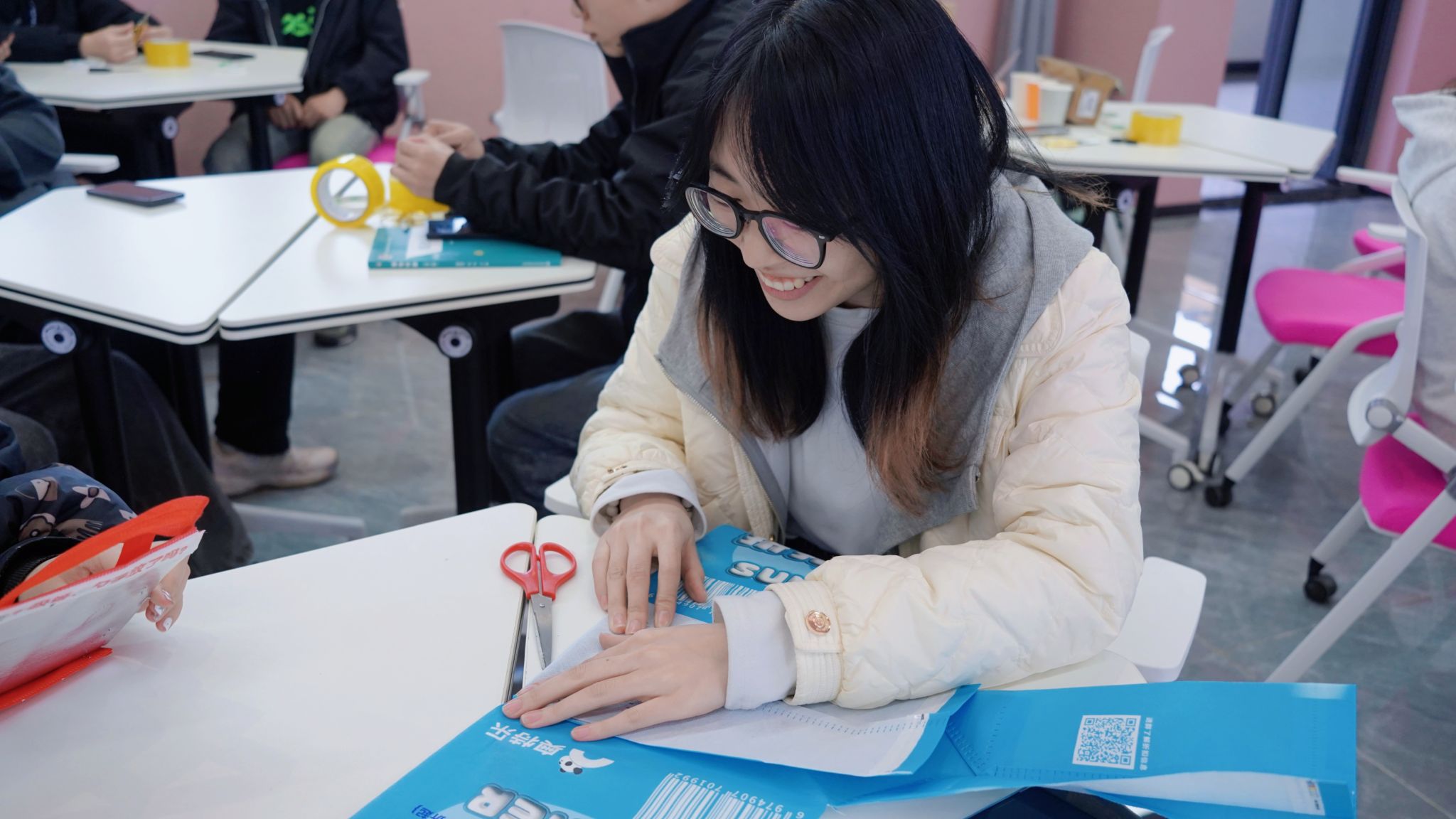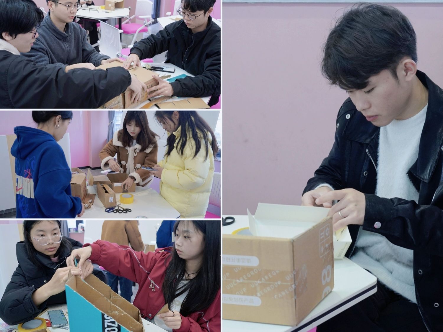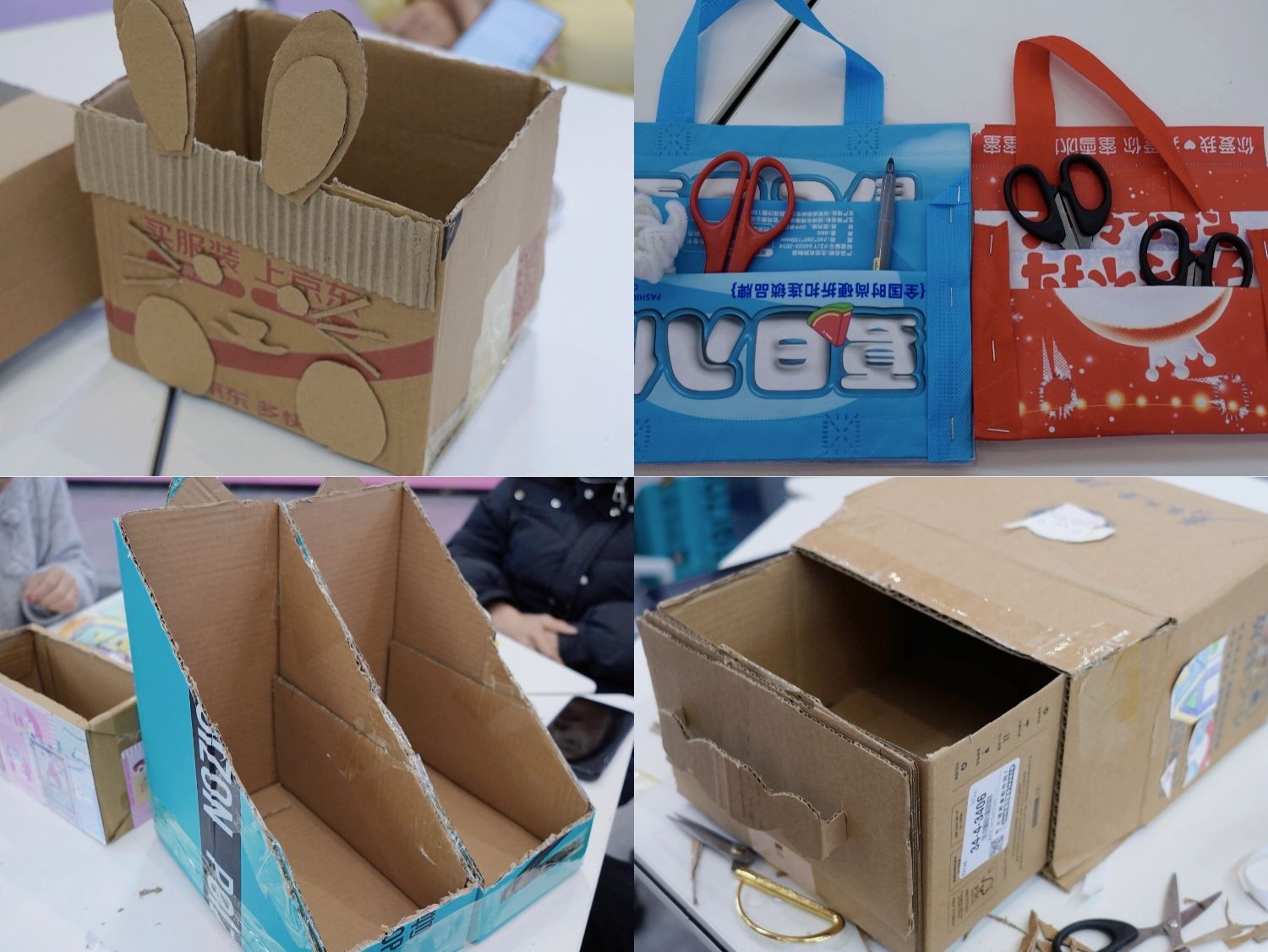 活动在主持人热情洋溢的开场白中拉开帷幕。各小组迅速进入状态,围绕“实用性”与“环保性”两大核心展开头脑风暴。在制作环节,同学们分工协作,将创意转化为作品:有的小组利用奶茶袋的防水特性设计出可折叠的“奶茶袋提包”;有的团队将纸箱裁剪拼接,打造兼具收纳与装饰功能的“纸盒收纳盒”;有的同学将塑料瓶改造成可分类收纳的“迷你垃圾桶”;更有创意达人将将塑料瓶与绿植结合,制作出“生态花瓶”。活动现场,此起彼伏的讨论声与剪刀、胶带的“咔嚓”声交织,处处洋溢着青春与创意的活力。