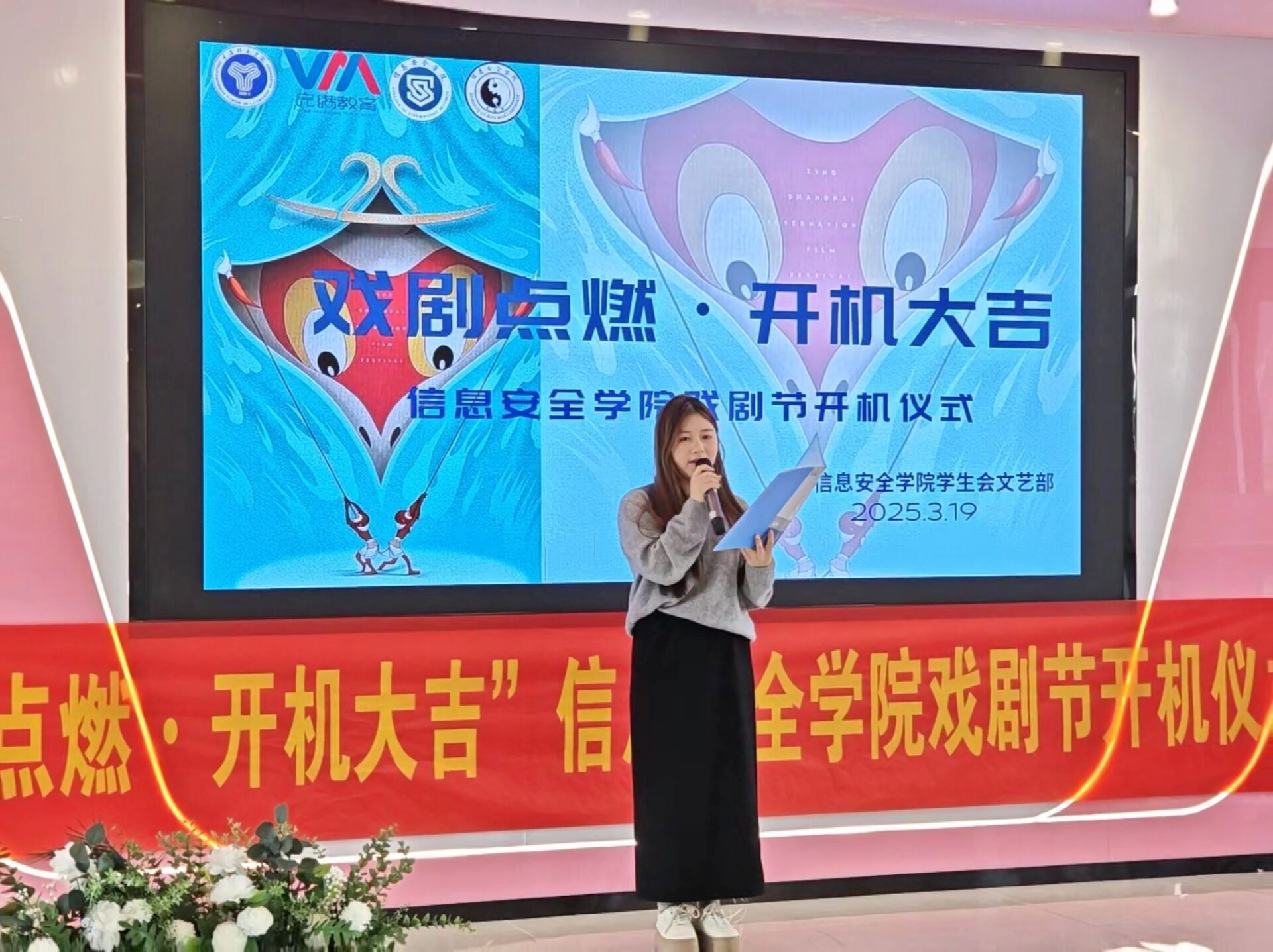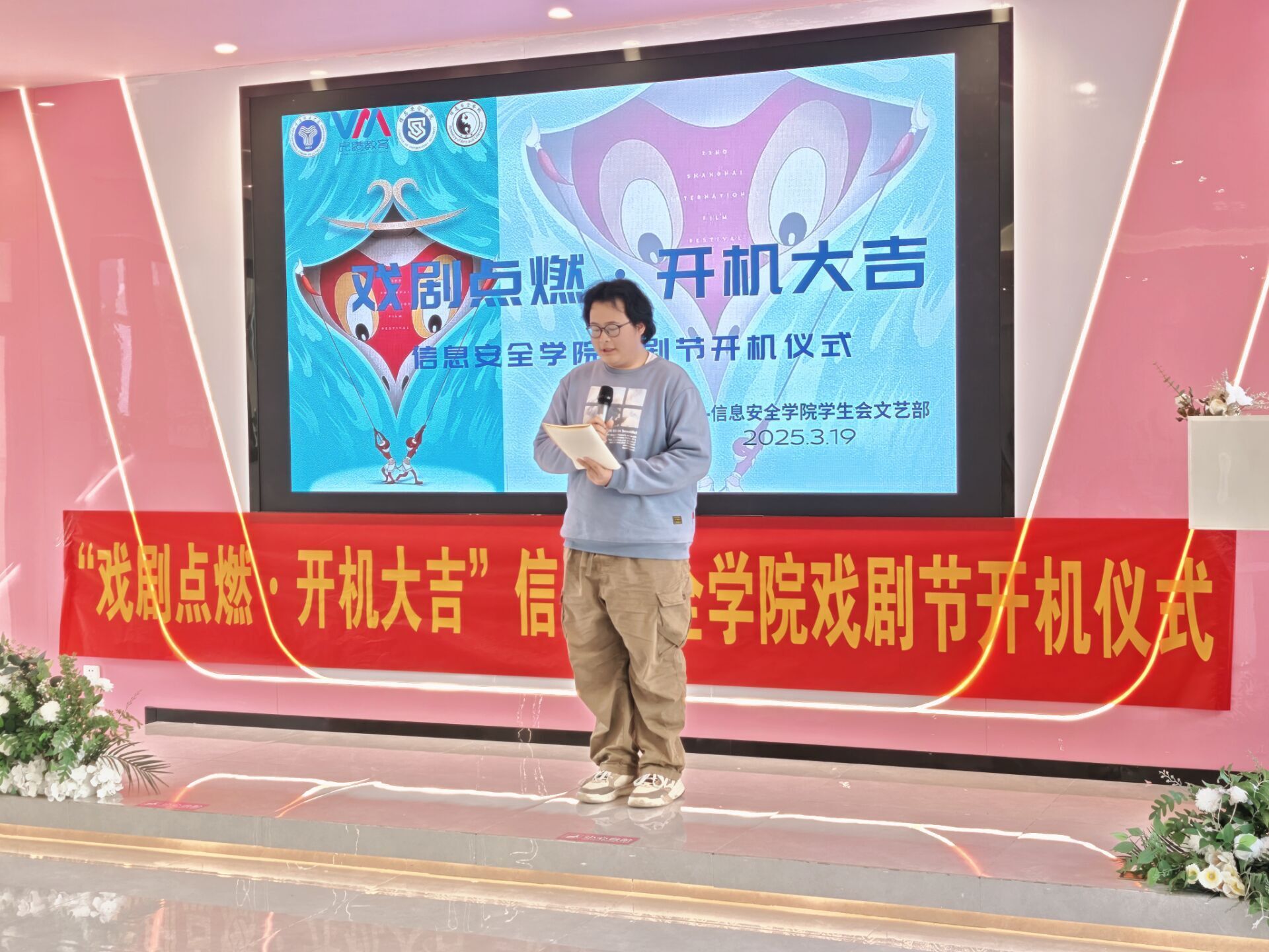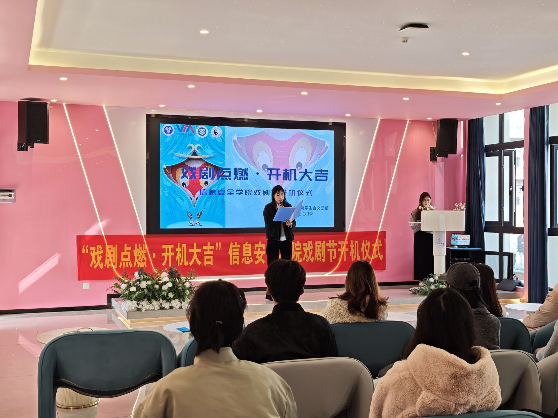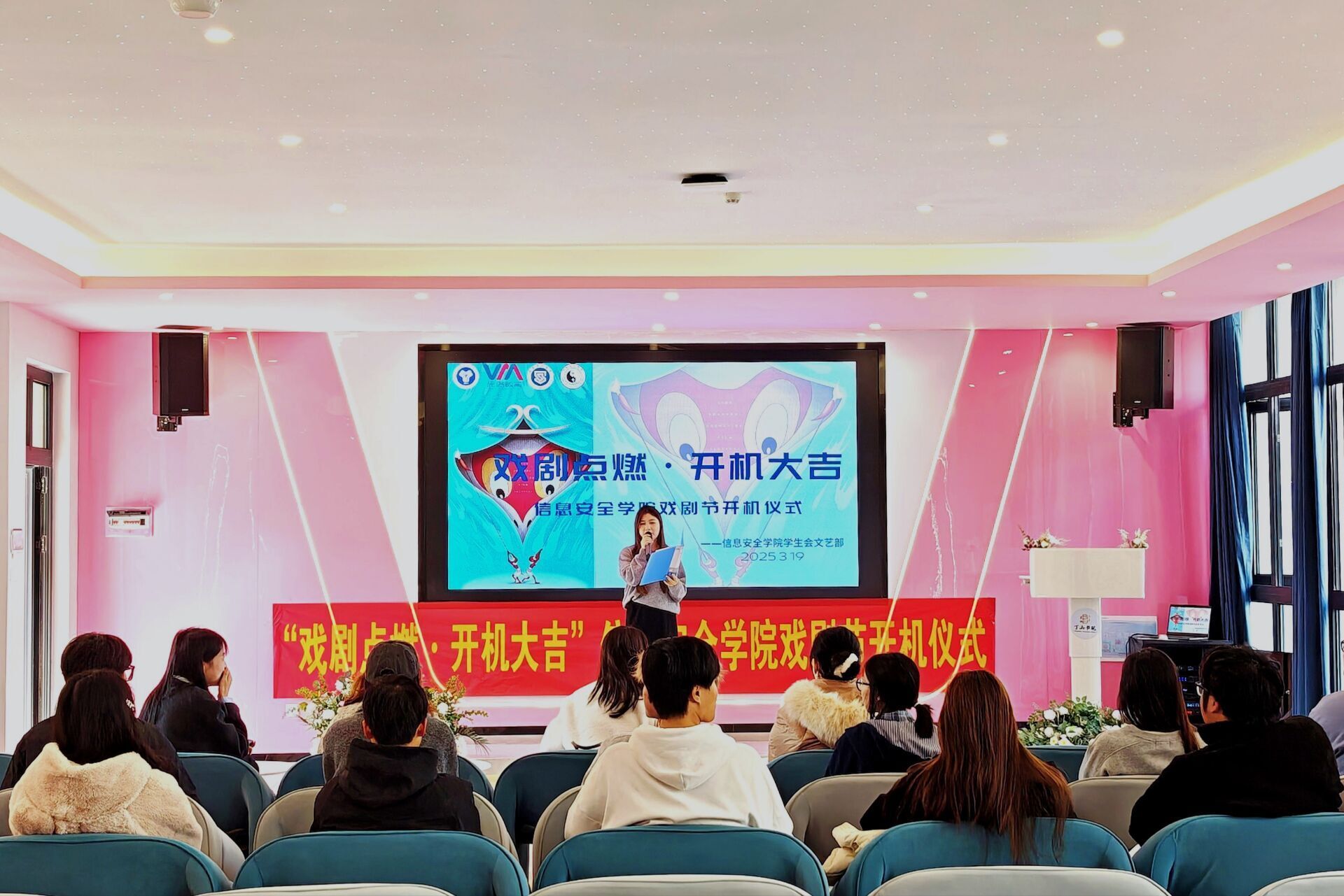 阳春三月,春风和煦,万物复苏之际,一股戏剧文化的新风,悄然吹进了信息安全学院。2025年3月19日下午4点,在丁山书院射手座・多功能空间,戏剧的大门缓缓开启,由信息安全学院学生会文艺部主办的 “戏剧点燃・开机大吉” 信息安全学院戏剧节开机仪式正式开幕。此场开机仪式,不仅为表演团队注入满满信心,更如同在学院各处种下戏剧文化的种子,假以时日,必将绽放出馥郁繁花。