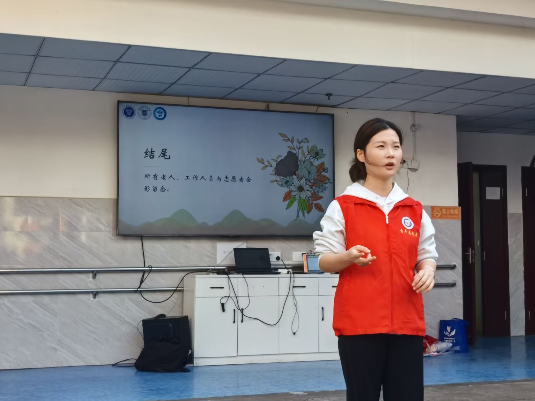 活动接近尾声时,由志愿者代表和雨昕同学发言对此次活动的感悟和意义。她说,陪伴是最长情的告白,我们会常回到这里看看,未来的我们会继续传承这份精神,让这份爱延续。随后,全体参与人员共同行动,将活动中使用的桌椅等物品归位,保持场地整洁有序。最后,大家邀请老人们一起合影留念,镜头定格下这充满温情的一刻,老人们的笑容成为此次活动最美的见证。此次活动不仅为老人们带来了欢乐,也让参与的同学们深刻体会到关爱老人的重要性,在社会上传递了正能量。