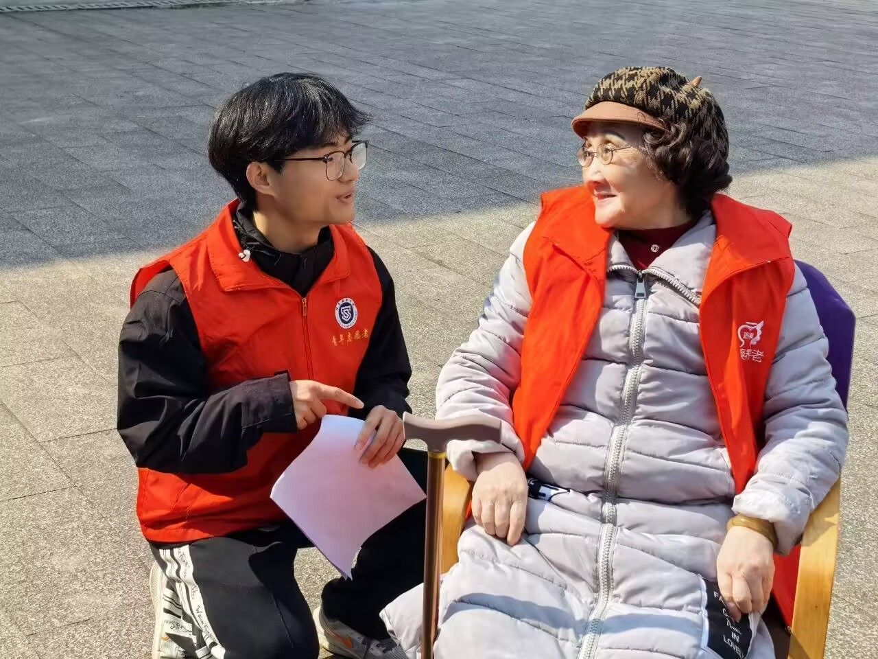 活动开展期间,由一同参与此次志愿服务活动的同学们组成的拍摄组,承担起记录重任。他们手持相机,活跃于活动的各个角落,或是弯腰蹲在老人身旁,抓拍老人们开怀大笑的模样,或是快步跟随志愿者与老人互动的脚步,定格下温馨瞬间,将每一份欢乐与感动都收录镜头之中。在光与影的交替下,刘杰同学和老奶奶被相机用爱记录下来,他们在聊天中度过温馨的时间。这些珍贵的照片和视频,后续将被精心整理成册、制作成视频,作为班级文化的重要组成部分留存,用以纪念此次意义非凡的公益之行。