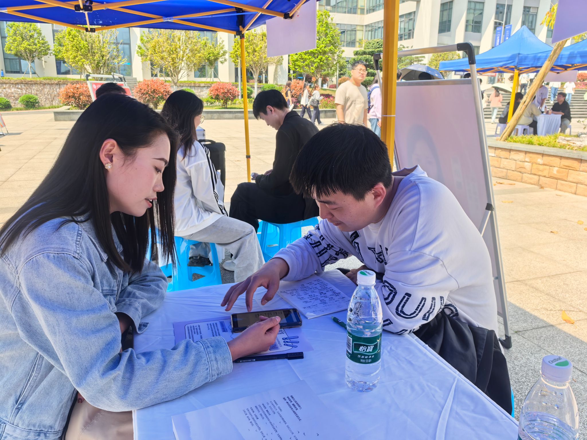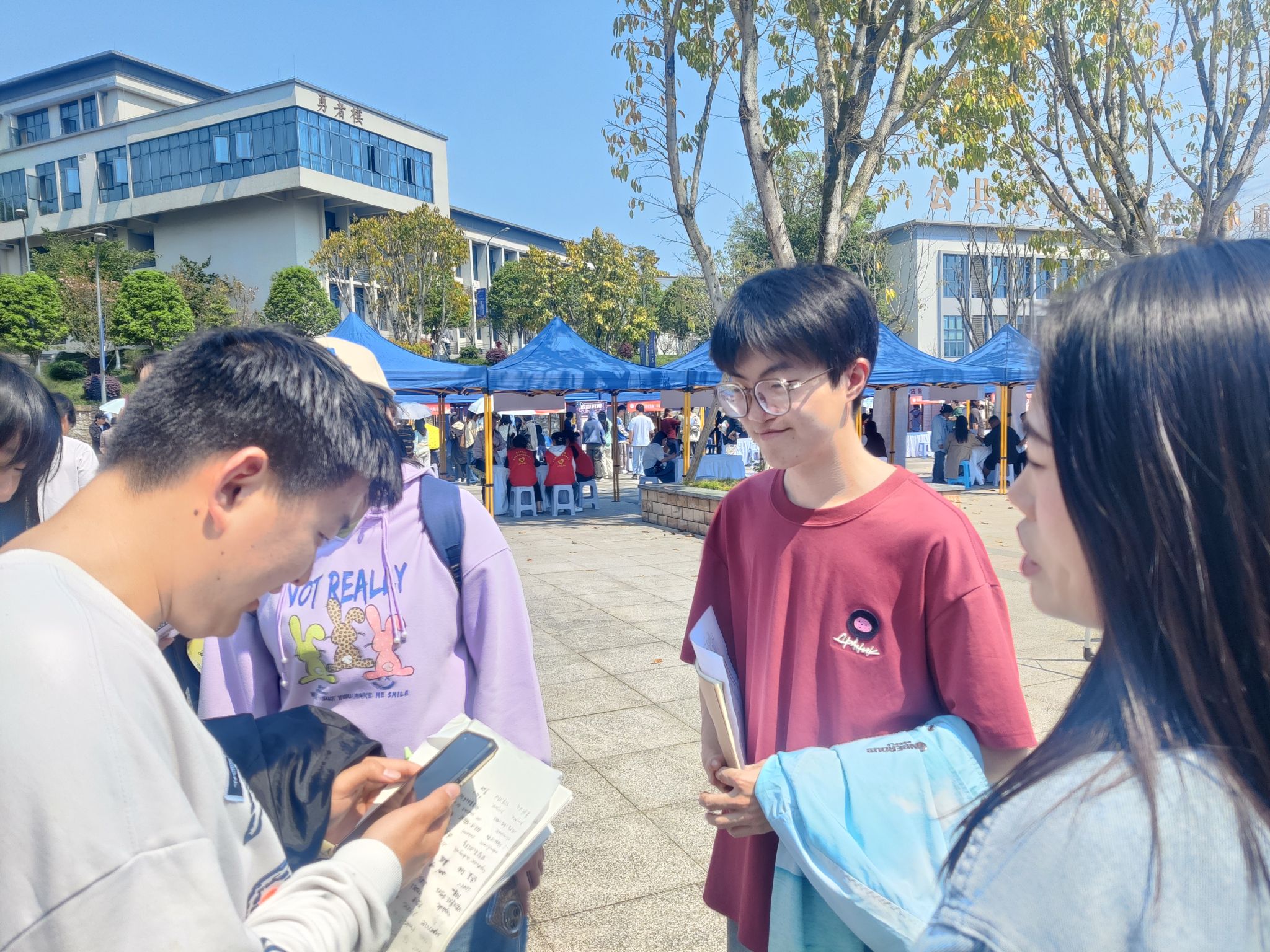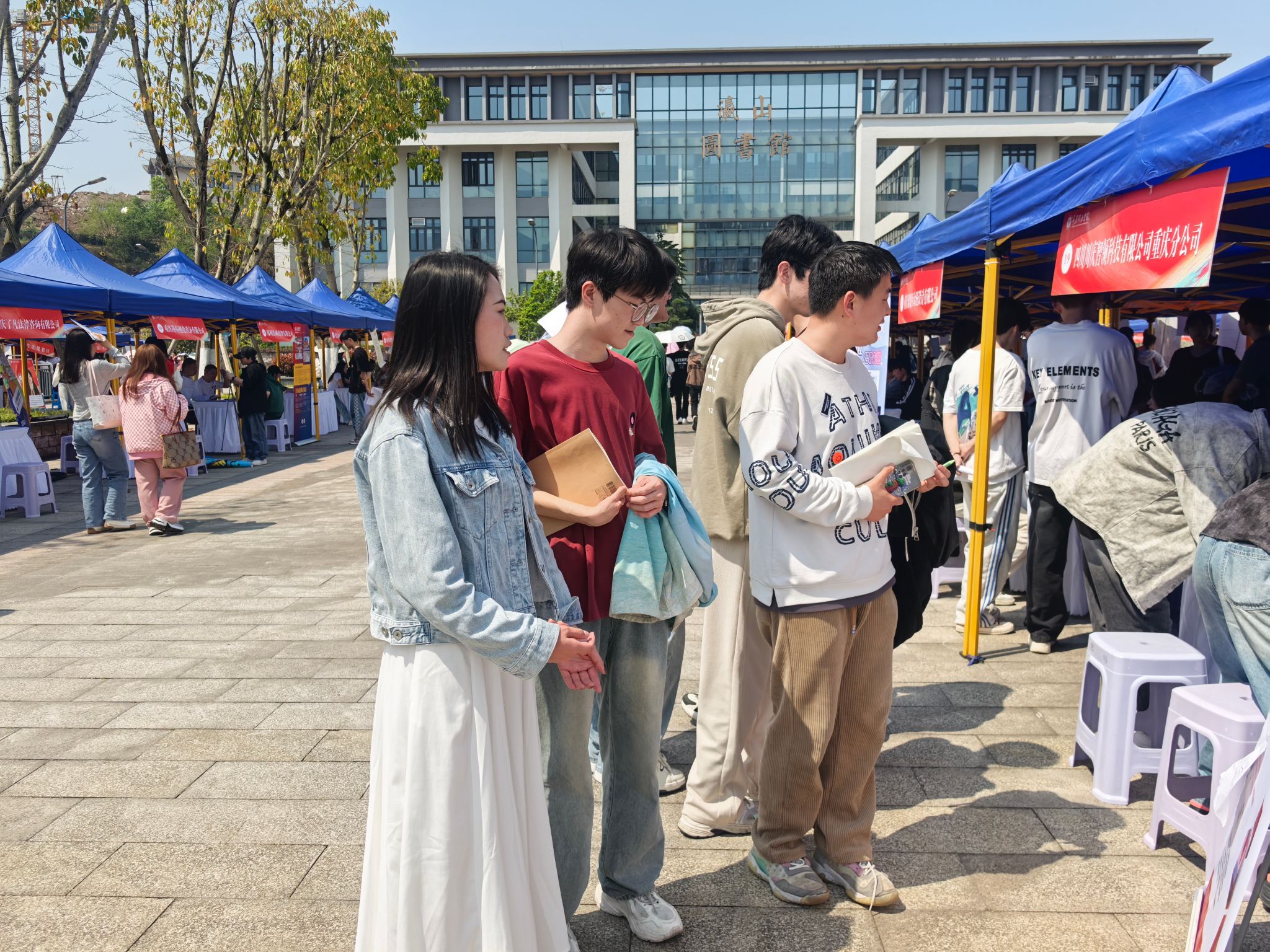 2025年3月27日11时,异科导师刘林林引领着2022级软件工程12班的同学到达图书馆前广场,参与了重庆移通学院綦江校区举办的“春日启航·职通未来”春季综合双选会。此次活动旨在引导学生深入了解就业形势,提前融入就业市场,不仅为学生们提供了一个自我展示、寻找理想职位的平台,更是一次难得的学习与实践机遇。