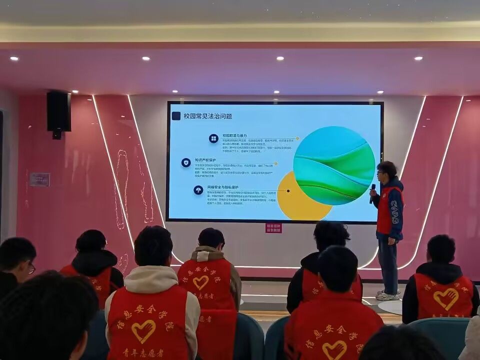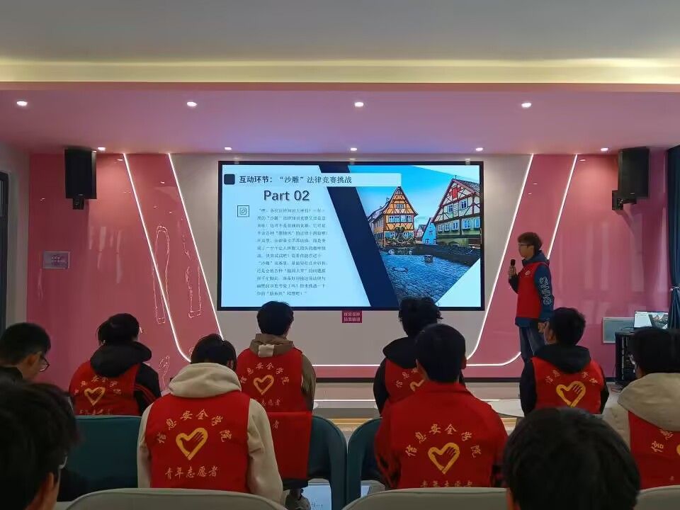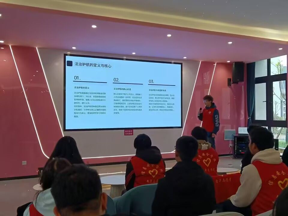 活动伊始,主持人用通俗易懂的语言,深入浅出地为同学们解读了宪法、民法典等重要法律的基本原则和核心内容。通过列举校园生活中常见的法律问题,如学生权益保护、网络诈骗防范、知识产权维护等,引导同学们思考法律在日常生活中的实际应用,激发了同学们对法律学习的兴趣和热情。