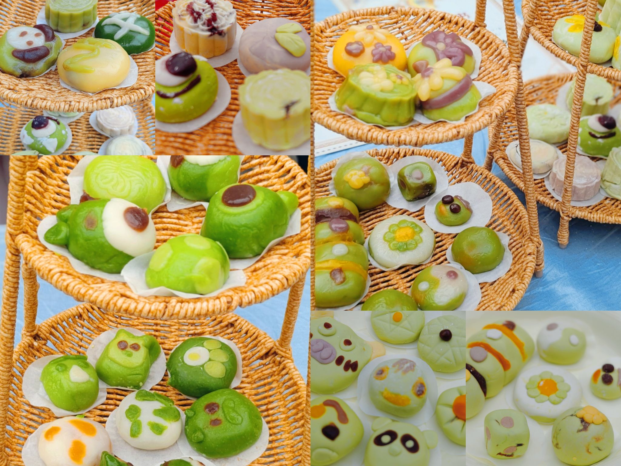 挑选完馅料后,主持人向大家讲述了青团的制作方法,各组工作台前,有人专注擀皮,有人巧手包馅,原本分属不同部门的成员此刻成了彼此最默契的搭档。揉面、包馅,各种新奇的想法不断涌现,青团在掌中幻化成憨态可掬的小猪、呆萌可爱的熊猫、层叠绽放的花等等还有各式各样极具创意的造型。当蒸汽氤氲的盖子揭开时,满庭艾香裹挟着惊叹声,春日的生机仿佛凝固在一颗颗玲珑青团中。