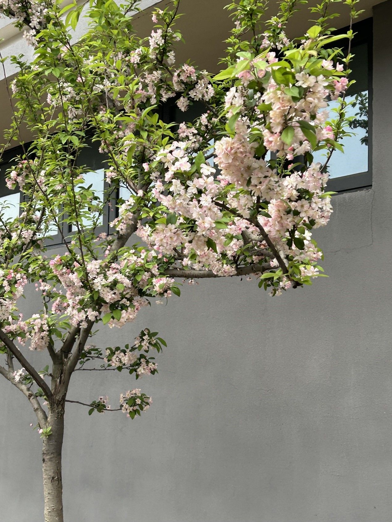 学校的西府海棠开了。那粉白的花瓣,向来不甚引人注目,偏在春寒料峭之际,忽然攒聚在枝头,排出一片热闹来。我走过树下,见那花瓣薄如蝉翼,边缘微微上翘,仿佛在抗拒着什么。花瓣中间吐出几丝花蕊,黄得刺眼。树下已有落英,星星点点地缀在泥地上,被几个匆匆走过的学生踏进土里,混作一团污渍。花自是开得烂漫,而看花的人却少。学生们低头疾行,眼睛粘在手机上,海棠不过是路旁一抹模糊的粉色影子。偶有驻足者,也不过掏出手机拍两张照片,便又匆匆离去,连花气都未曾嗅得一口。海棠不知人事,只管开着、落着,年复一年......】