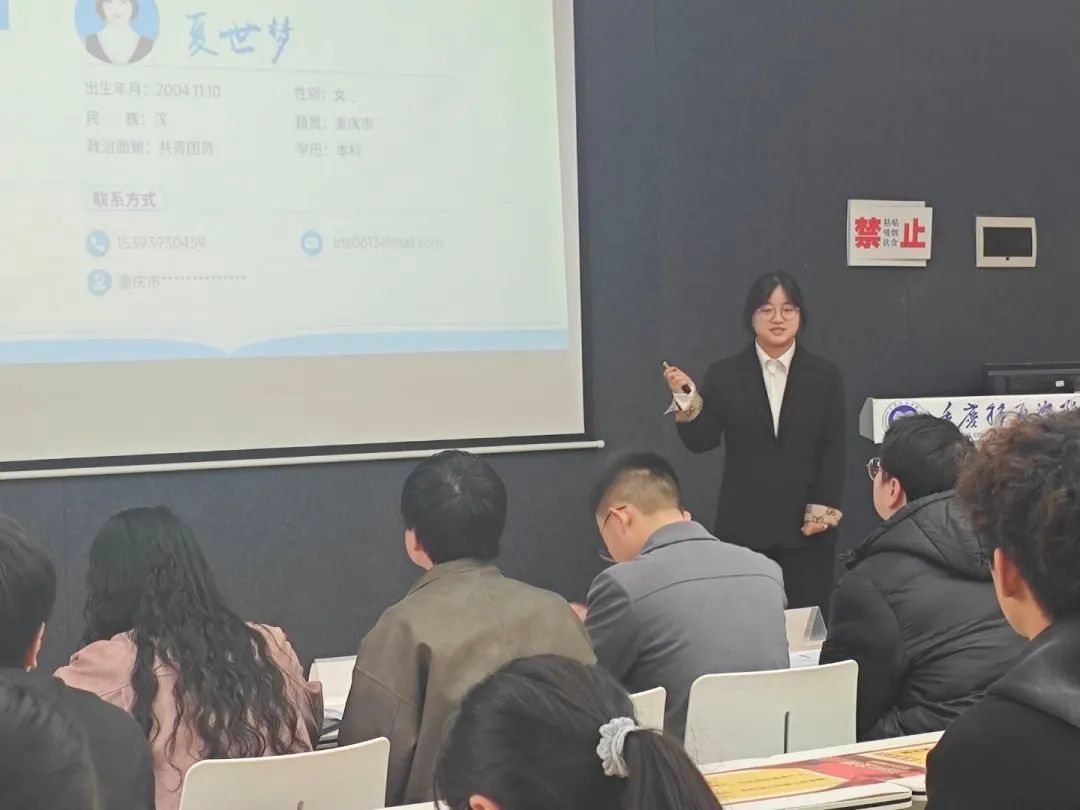 为全方位提升同学们的就业竞争力,掌握职场前沿动态与AI赋能新趋势,培养起能够支撑职业长远发展的核心能力。信息安全学院团总支就业创业助理团于2025年4月2日16:00-18:00在瀛溪书院回声报告厅,顺利开展了“完满启航·AI赋能职场梦”第三届全国大学生职场模拟招聘大赛信息安全学院院级复赛。本次活动邀请了温宗航、焦梦玲、刘会鑫、刘嘉楷、林西康、赵天溢六位老师担任评委,共计50余名同学参与,由魏平粤同学主持。