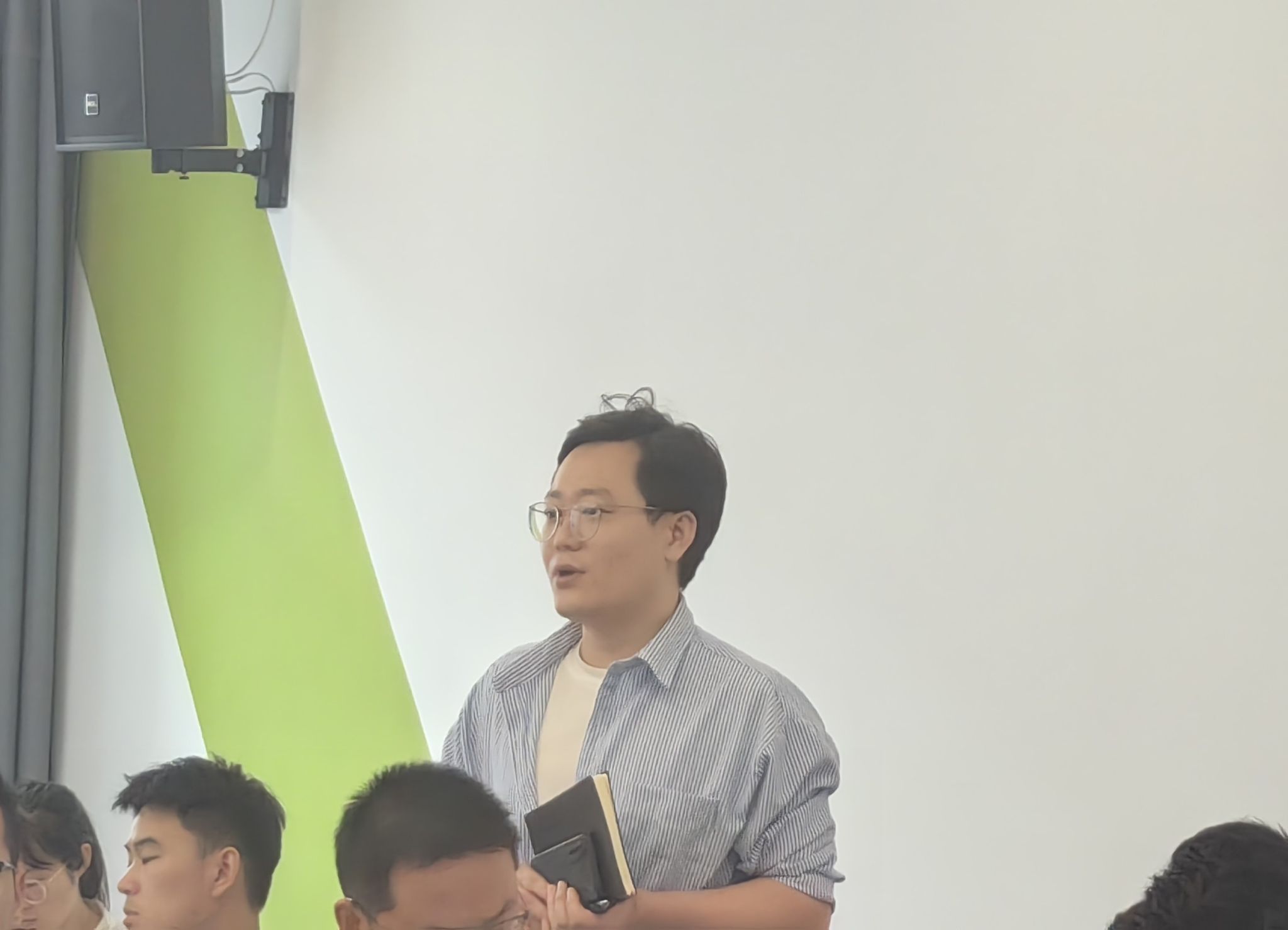 辅导员王辅崇老师首先汇报了他所带2025届毕业班学生整体情况,从就业意向、备考状态、求职进展等维度分析学生现状,分享了“一对一谈心”“指导简历制作”“传授面试技巧”等帮扶经验。他特别提到,建议全院教师持续关注学生个性化需求,在简历制作、面试技巧、职业规划等方面提供更多支持,发出“全员参与、全程帮扶”和“全院通力合作,共同促进学生去向落实”的行动倡议。