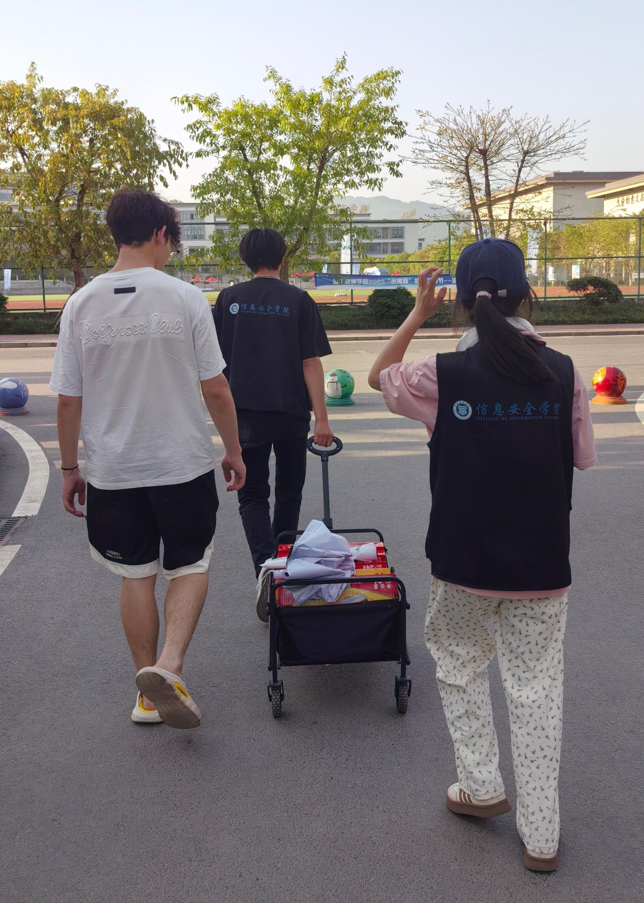 在这场体育盛会的背后,是信息安全学院学生会的全体成员默默承担着大量繁琐而重要的工作。从训练计划的制定、物资的采购调配,到赛事流程的协调、后勤保障的落实,他们事无巨细,严谨推进。为保障运动员训练需求,他们及时采购专业装备和营养补给;为确保训练安全,时刻关注运动员身体状况,提供及时的医疗支持;为协调各方资源,他们频繁奔走沟通,解决场地使用、比赛流程等各类问题。正是他们的辛勤付出,为学院顺利参赛筑牢了坚实后盾。