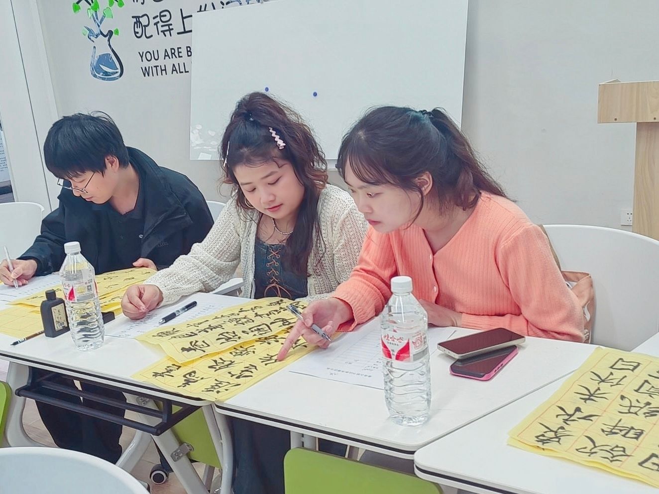 活动现场,评委老师们与参赛者有序落座。参赛者利用现场的笔墨纸砚创作以阅读为主题的作品。创作完成后,评委老师们根据书法讲究的笔法、结构和章法对选手作品进行评分,并对参赛者的书法作品进行点评。最后由工作人员进行分数统计,并公布一等奖、二等奖和三等奖获得者,为其颁发奖状和奖品。此次活动的举办,不仅是为了激发同学们的创作能力,也是为了弘扬传统文化,让同学们在学习之余,感受传统文化之美,培养全面发展型人才。