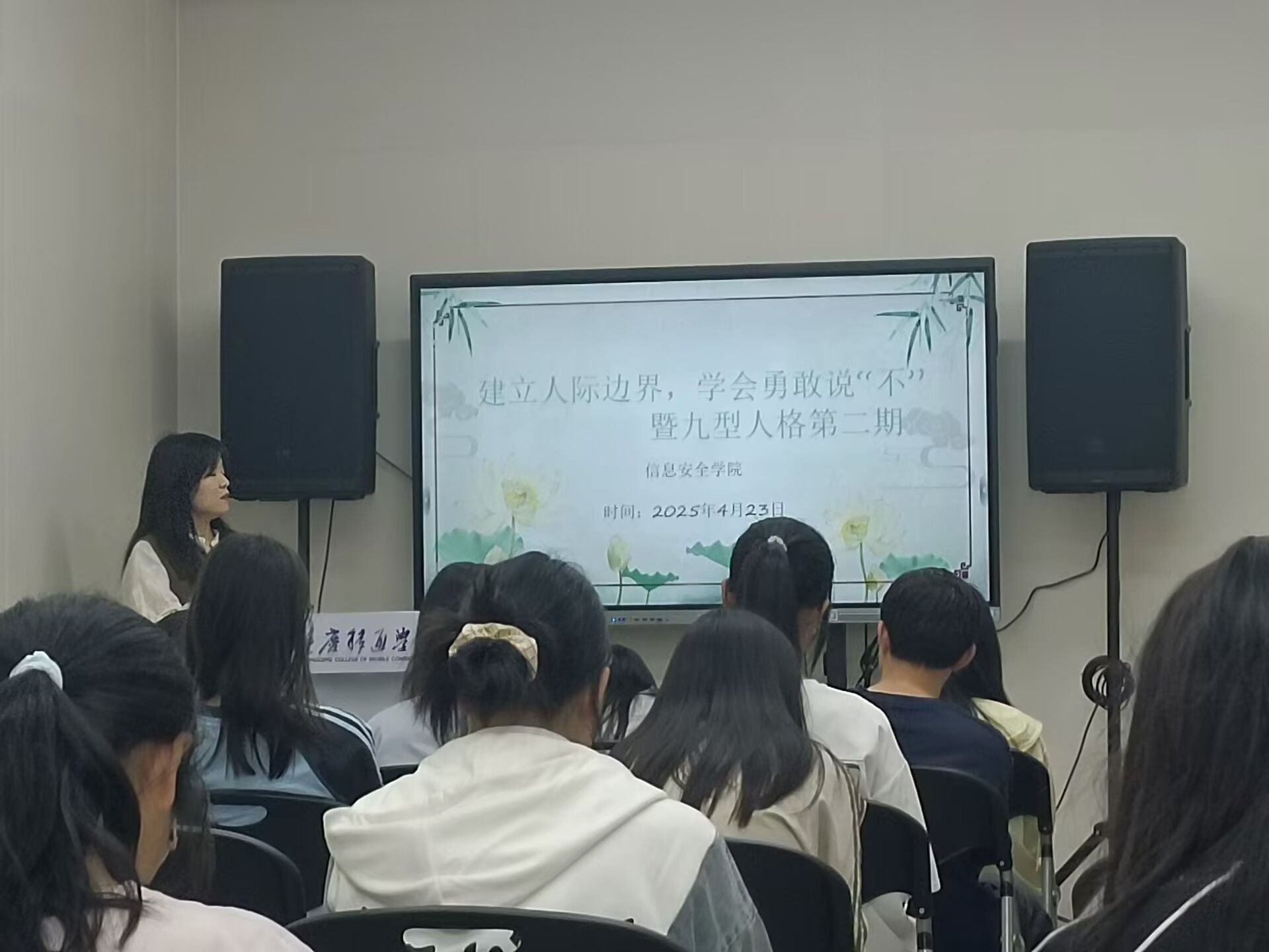 4月23日,信息安全学院心理专项岗老师车秦艳针对“助人型”人格学生开展了一场主题为“守护你的星光结界,温柔说‘不’赋能成长之旅”的团辅活动。本次活动旨在帮助学生们在助人与自我保护之间找到平衡,提升人际交往中的心理素养。
