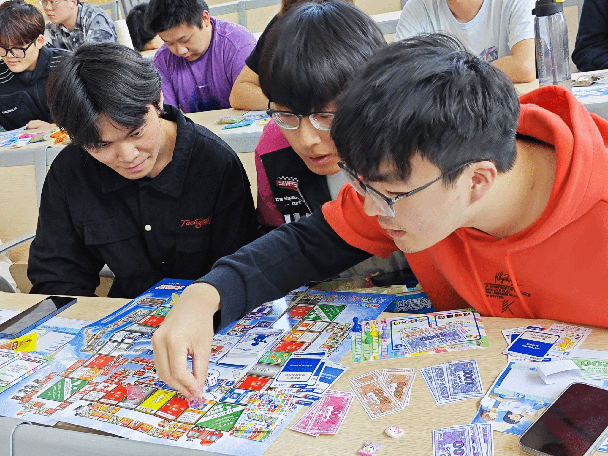 “职业大富翁”环节将规划具象化。学生通过骰子触发职业事件,体验选择与机遇的关联。在游戏过程中,两个小组的同学不仅体验行业波动与代价选择,还培养了风险应对思维。随后,两个小组的代表分别发言,分享了他们的游戏体验和感悟。