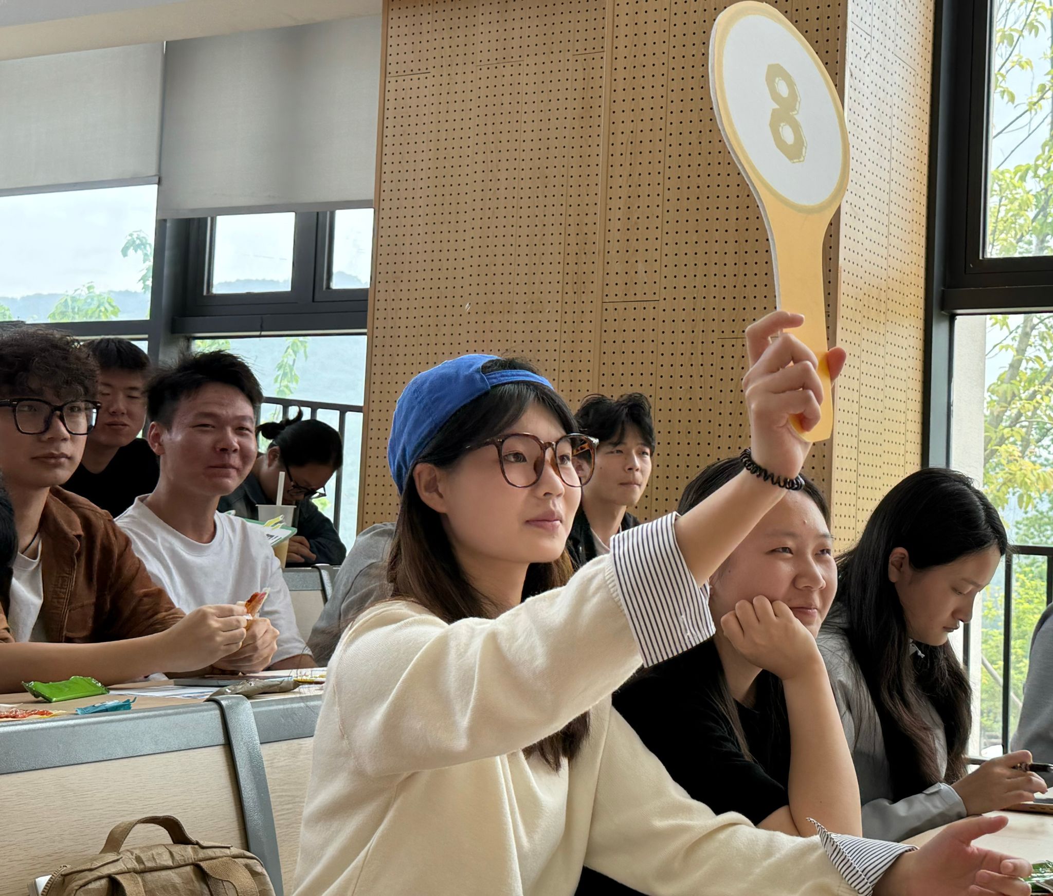 随后,“职业能力拍卖会”环节以虚拟竞拍形式展开,学生用100枚“人生筹码”竞拍“沟通力”、“抗压力”、“创新力”等核心能力卡。各小组以精准策略成为“能力富翁”,通过抉择,同学们对职业竞争力也有了更清晰的认知。