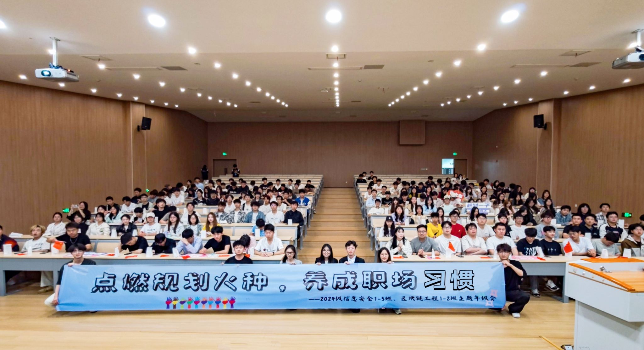 为帮助大一新生树立职业规划意识,培养规划习惯,4月26日晚20:00,信息安全学院2024级信息安全1-5班、区块链工程1-2班185名学生,于贤者楼328教室开展“点燃规划火种,养成职场习惯”主题年级会。活动通过互动游戏、政策解读、导师交流等形式,为新生开启职业规划启蒙课。