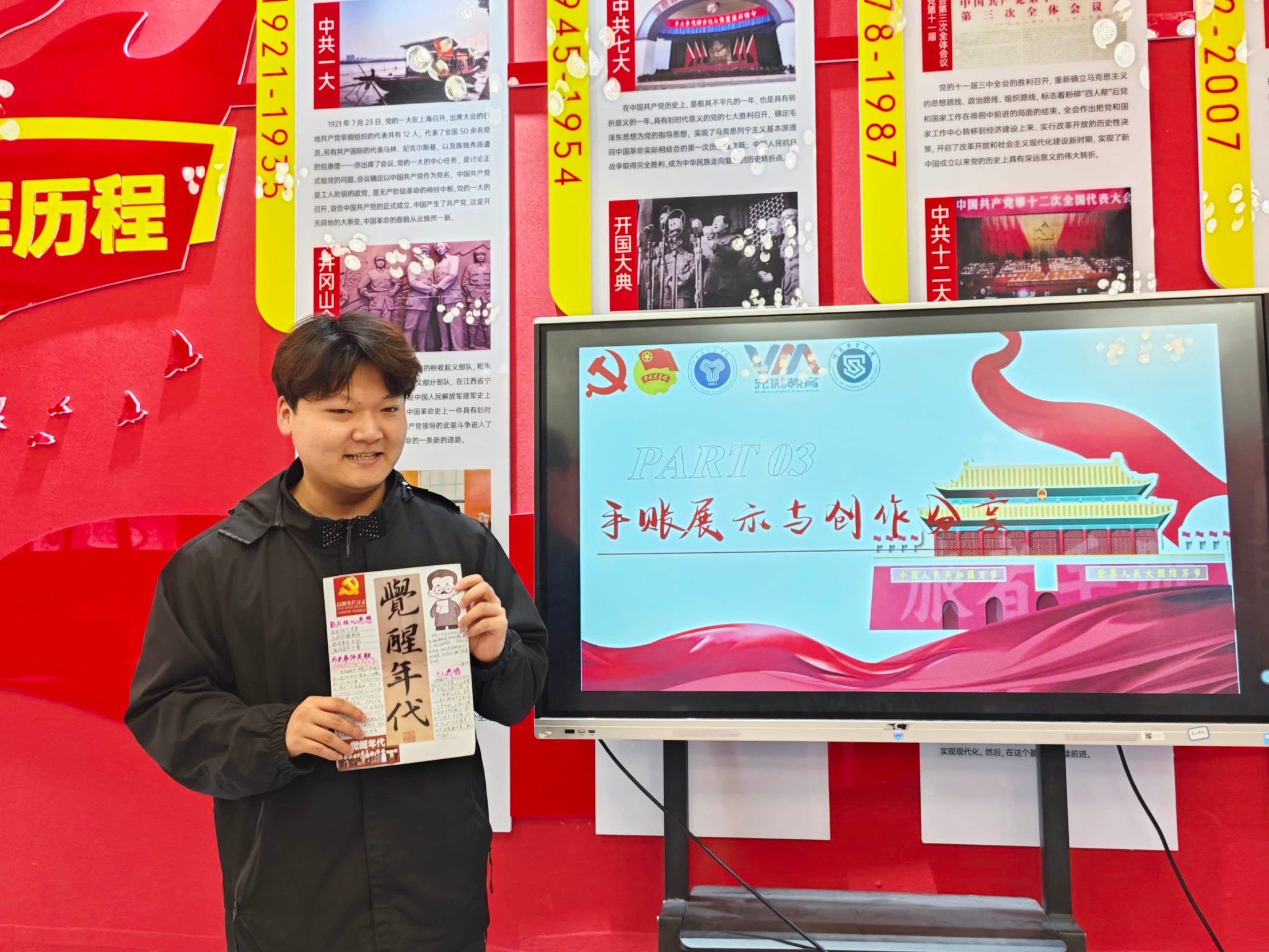 手账展示与创作分享环节将活动推向高潮。同学们围绕《觉醒年代》《长津湖》《建党伟业》等红色影片,结合党史背景、人物精神、经典台词等内容,精心制作个性化手账。手账内容丰富多样,不仅包含“影片核心思想”“历史事件关联”“个人感悟”,还运用拼贴、绘画、书法等多元艺术形式呈现。有的同学用细腻的笔触描绘出《长津湖》中志愿军战士们在冰天雪地中坚守阵地的画面,旁边配上感人至深的个人感悟;有的同学则通过书法书写《觉醒年代》中的经典台词,展现革命先辈的伟大理想。这些手账作品不仅是同学们创意的体现,更是他们对红色文化深入理解的见证。