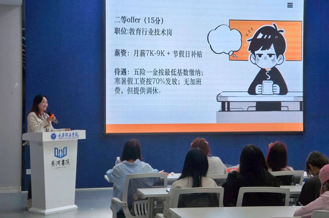 为助力学生提升职场竞争力,培养职业化习惯。2025年4月23日,信息安全学院2022级网络工程1-3班、软件工程7-9班,于綦河书院二号楼观涛·多功能报告厅开展“习遇offer,一锤定音”主题年级会。活动通过趣味互动与职场实践相结合的形式,帮助同学们深化对职场软实力的认知,为未来职业发展奠定基础。
