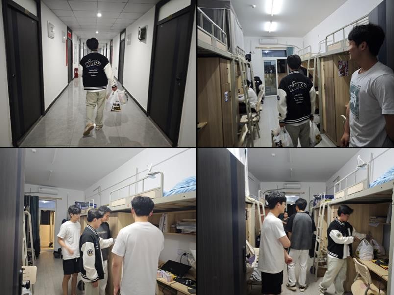 “快看看有没有你们爱吃的!” 晚上21点,异科导师李中可刚走进古剑书院S424寝室,便打开零食袋,露出里面分门别类的零食:独立包装的曲奇饼干、酸甜的水果干、便于分享的薯片礼盒,甚至贴心准备了低糖零食以照顾不同饮食习惯。“知道你们平时写代码费脑子,备点小零食既能垫肚子,也能让聊天更轻松。” 导师的话让原本有些拘谨的学生们笑起来,主动接过零食的同时,话匣子也随之打开。在古剑书院S502寝室,学生们围在零食堆旁,从 “哪款饼干最酥脆” 聊到 “最近编程课的烧脑作业”,零食包装袋的沙沙声与笑声交织,瞬间消融了初次交流的隔阂。