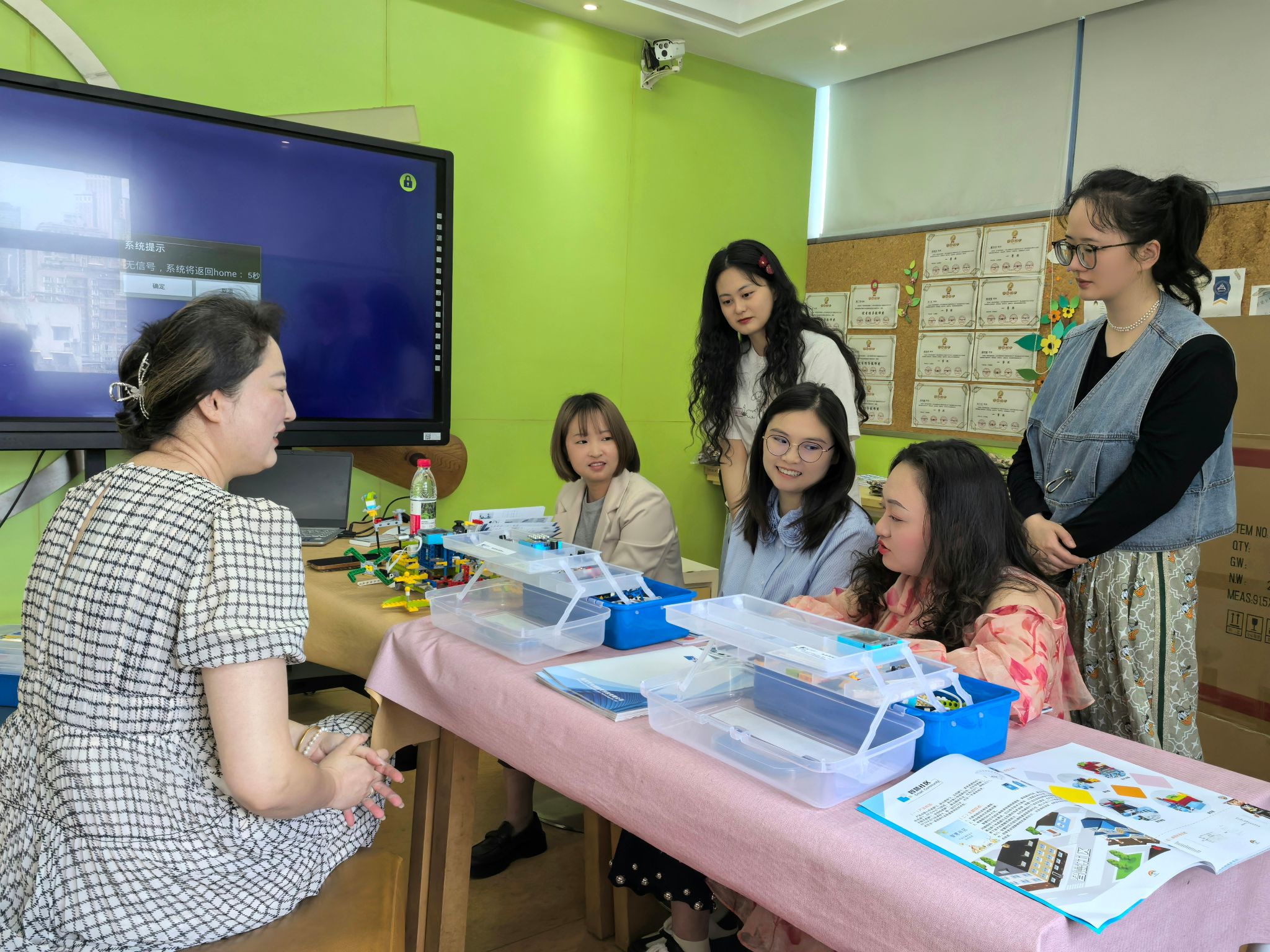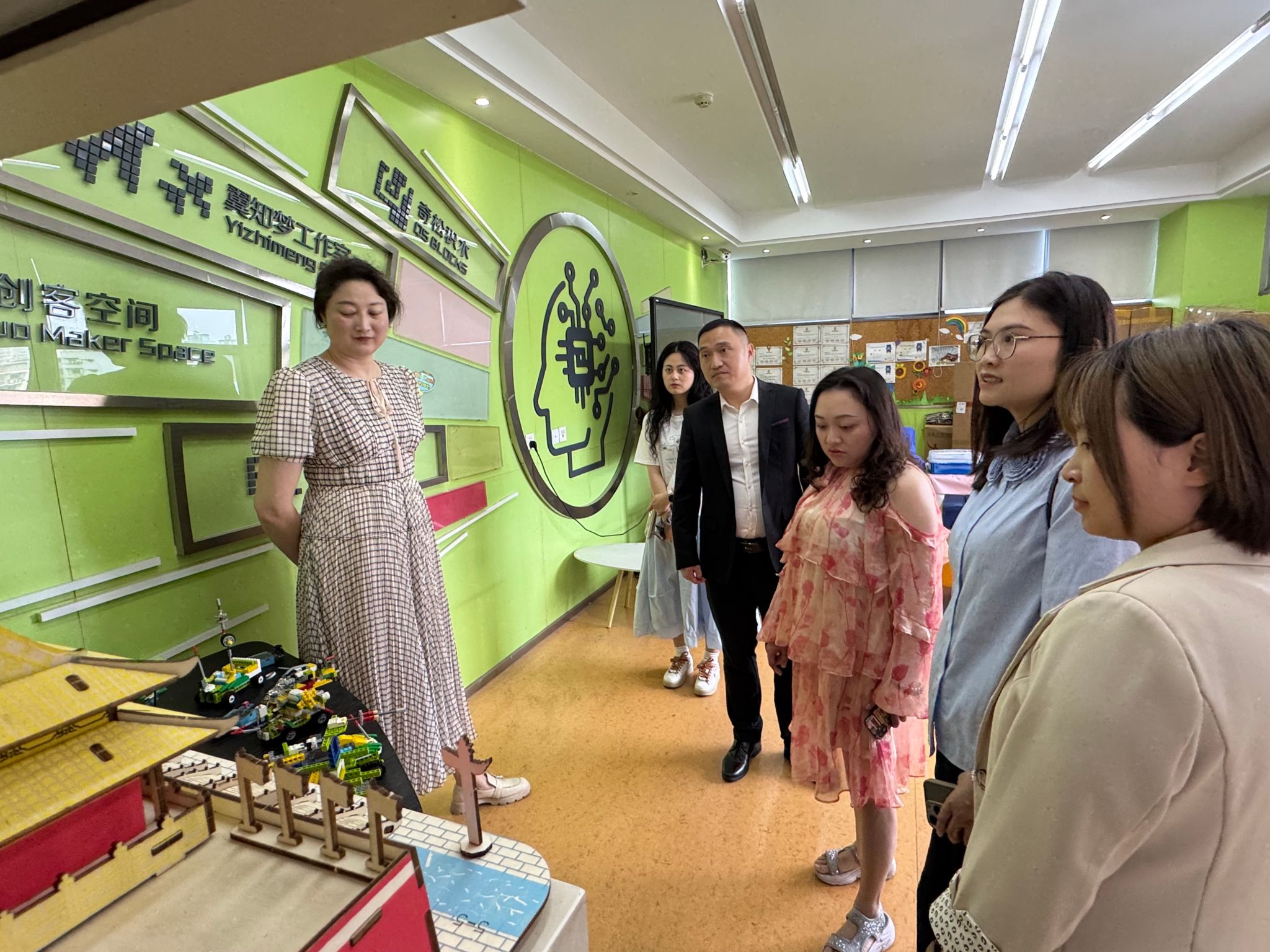 座谈会后,走访团队赴珊瑚小学培训中心观摩课堂。积木编程与建筑模型课上,教师通过动画演示、分组实践,引导学生将编程逻辑融入创意设计,课堂气氛活跃,学生作品兼具技术性与趣味性。走访团与师生交流,直观感受“做中学、创中悟”的教学成效,为优化实践教学环节获新思路。