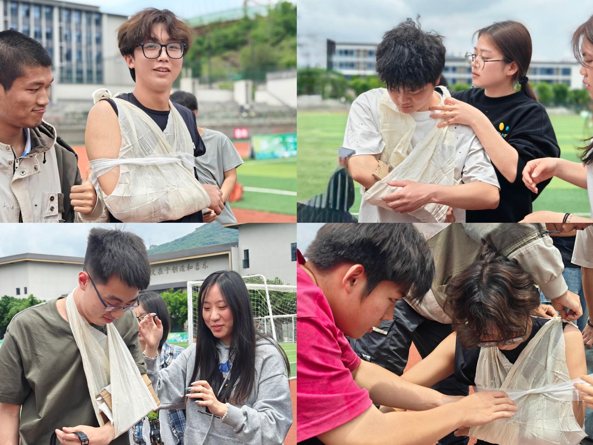 作为压轴环节的“终极防御”关卡,通过模拟急救场景,让参与者获得实战化训练体验。参赛队伍需要选派一名队员进行急救操作,在5分钟内完成如伤口止血、骨折固定、心肺复苏等急救操作,强化了师生在复合型灾害中的自救互救能力。