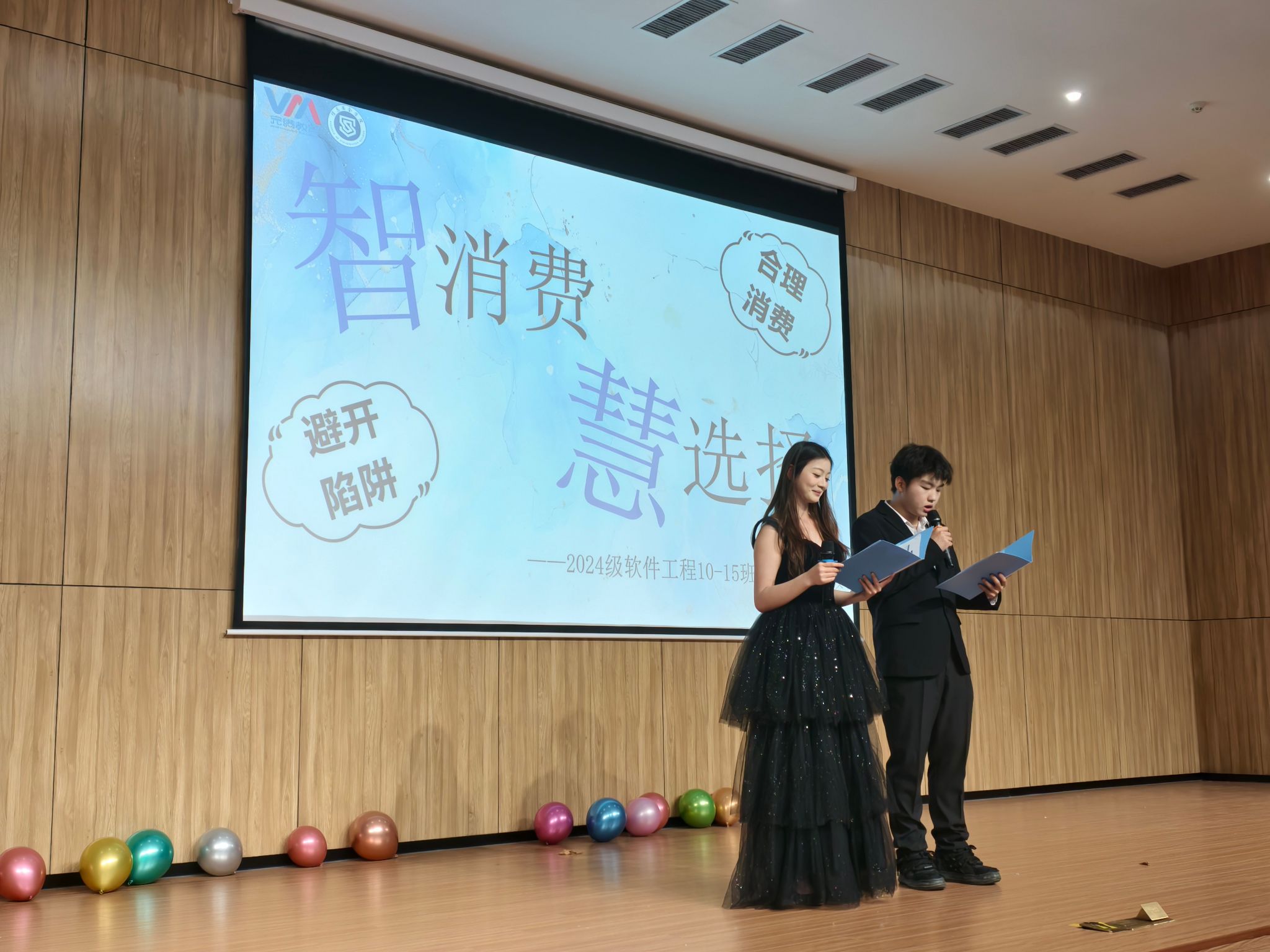 2025年4月25日下午15:00,2024级软件工程10-15班在贤者楼131多功能报告厅举办了一场别开生面的主题年级会,主题为“智”消费、“慧”选择。旨在引导同学们树立科学消费观,提升理财与风险防范能力。此次年级会聚焦当代大学生复杂的消费现状,为大家提供了实用的消费指导。