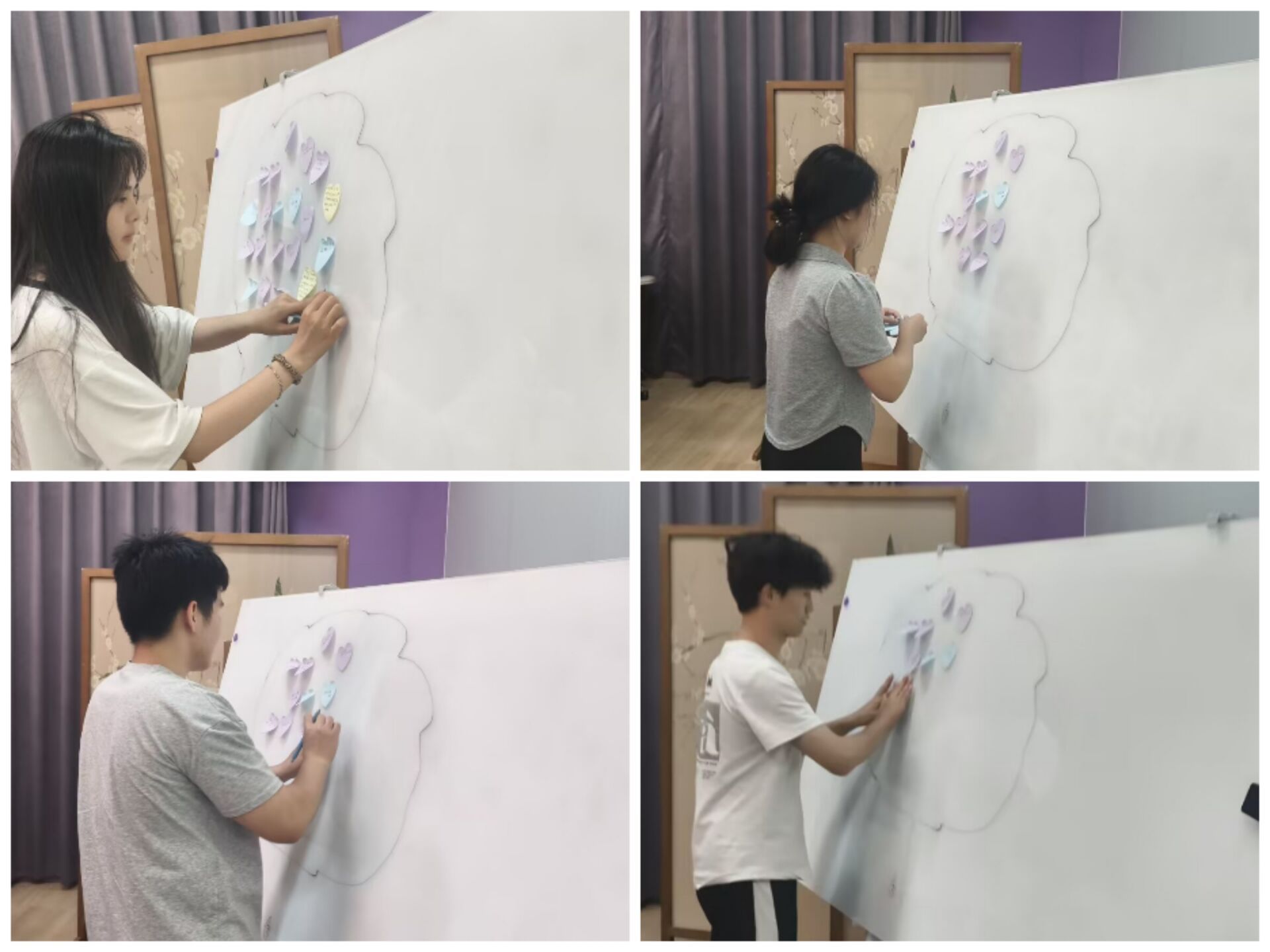 便签环绕“生命之树”。从“论文被拒不是学术终点”的自我和解,到融合叙事疗法与积极心理学,利用‘挫折组’的设定,促使参与者完成‘攻击性言语—认知扭曲—情绪管理’反思链。”