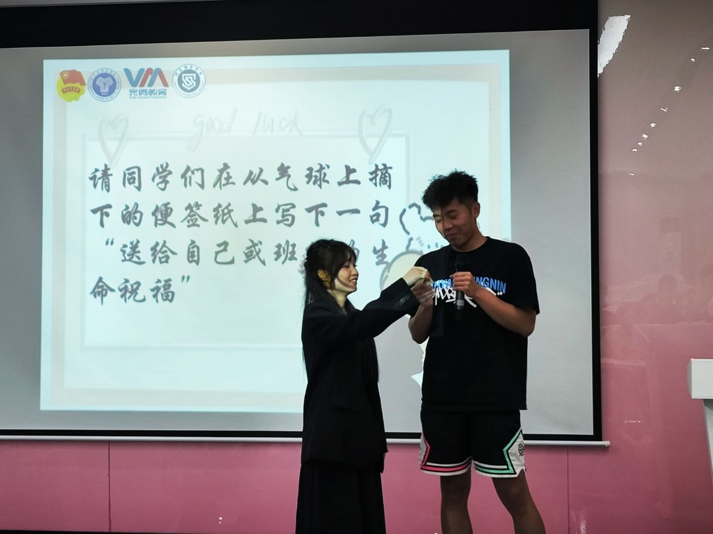 最后的“生命因挫折而美丽”环节通过 “书写困惑 —— 匿名传递 —— 互助赋能” 的闭环设计,构建起温暖的心理支持网络。同学们将近期的挫折写在便利贴上,而后,在活动场地内同学们取下他人气球上的便利贴,并为便利贴上的挫折写下鼓励的话语,以此释放压力。随后在气球爆破的声响中,压力尽情释放,同学们的挫折也随之烟消云散。这样 “匿名互助 + 仪式感释放” 的形式,在集体行动中培育了同学们积极应对挫折的心理韧性。