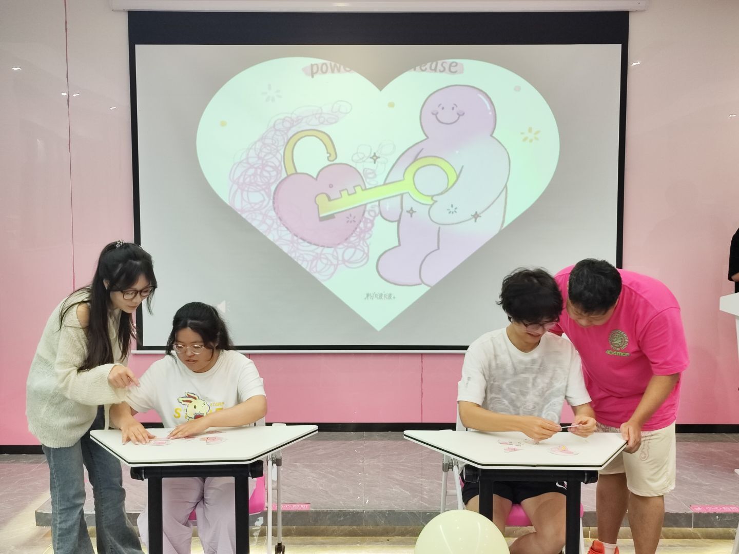 作为团队协作核心环节,“爱非完美・打开心门” 爱心拼图挑战尤为亮眼。该游戏采用爱心形状拼图,共邀请4组成员参与,每组两名同学配合,在限时5分钟内,通过非具体形状描述完成拼图。指挥者只能用“上下左右”“这片颜色偏蓝”等模糊语言引导拼图者操作。过程中,大家发现需要交换碎片才能完成任务。这一设计巧妙映射生命个体在社会联结中的相互支撑,让参与者直观感受 “协作共生” 的成长哲学。