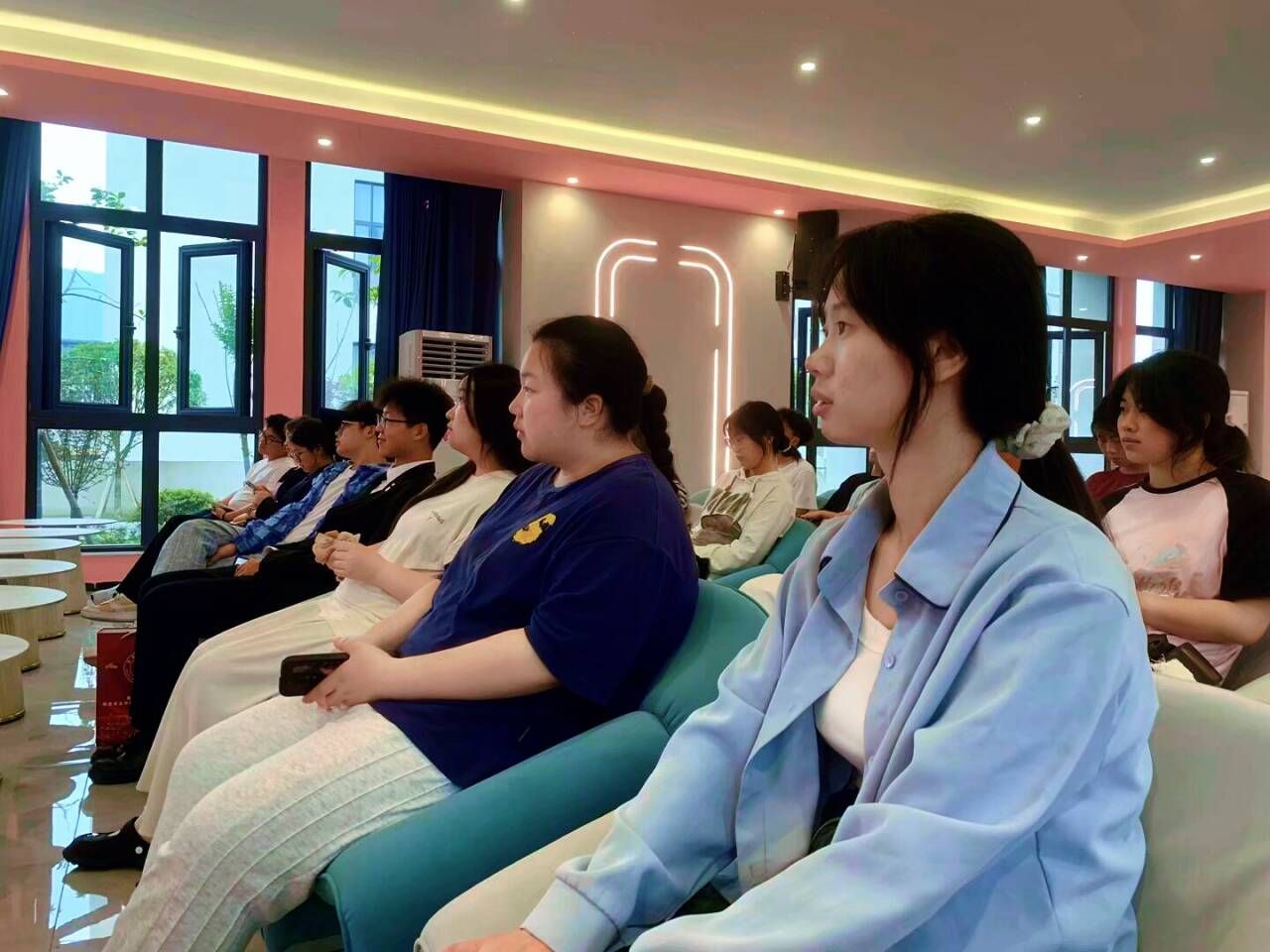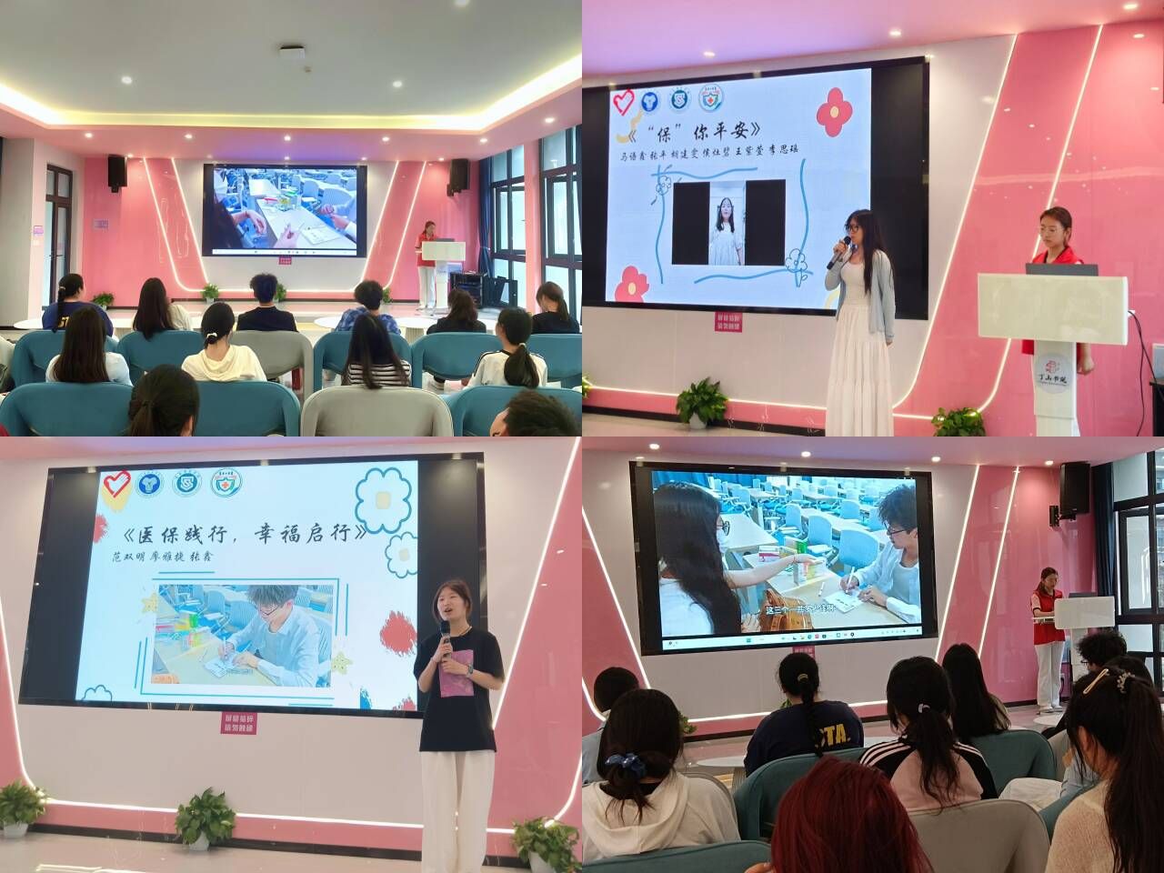 决赛当天,随着主持人讲解医保知识以及医保在生活上如何正确使用,现场活动气氛也逐渐热火朝天,在分享环节,作品代表人依次上台,发表制作视频的心得,从不同角度讲解了医保的好处。同学们此起彼伏的声音在丁山书院射手座·多功能室回荡。由此开启了精彩的荧幕医保视频展示环节。