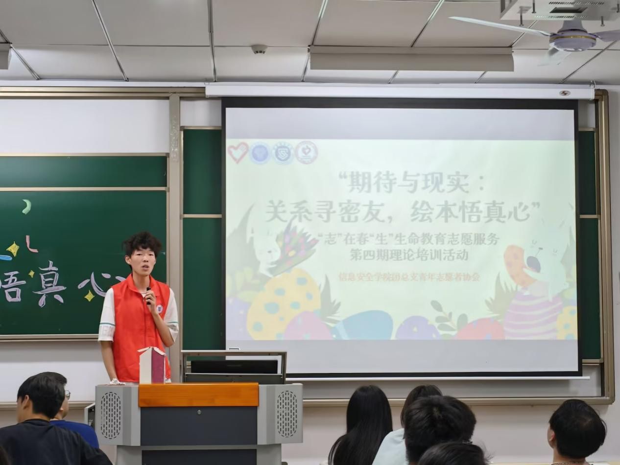时光轻淌,于无声处雕琢着生命的纹理,生命教育的使命在岁月沉淀中愈发清晰。为帮助参加者塑造健康人际认知和提升情感支持的能力,2025年5月9日,信息安全学院团总支青年志愿者协会于行者楼103开展了“期待与现实:关系寻密友,绘本悟真心”信息安全学院生命教育志愿服务系列理论活动第四期。通过互动体验与理论结合的形式,引领同学们深入探寻生命中人际关系的奥秘,为生命教育注入鲜活力量。