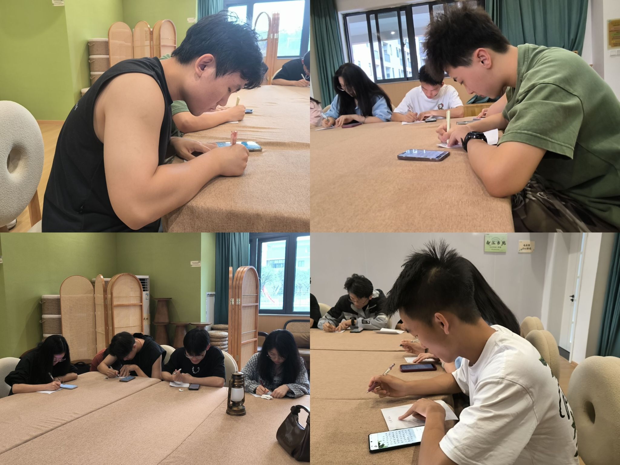 诵读分享会上,同学们结合自身经历,深情解读经典作品背后的精神密码。郑翰宇同学感慨道:“当我的笔尖触到‘砍头不要紧,只要主义真’时,仿佛能感受到红军烈士面对屠刀的从容与坚定。”胡金宇同志分享了自己阅读《红岩》的感悟:“江姐在狱中用竹签作笔、棉絮当墨的故事,让我深刻体会到了共产党人的坚韧不拔。书法不仅是一种艺术,更是一种精神的传承。”