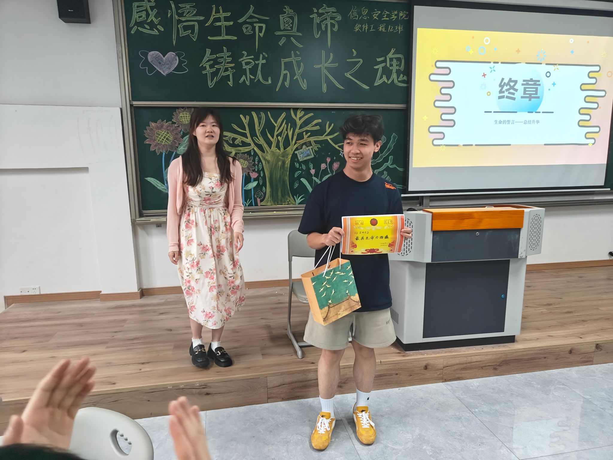 班会还对前期 “生命主题创意摄影展”进行总结,公布最受欢迎摄影作品并邀请作者分享创作故事。此外,现场为互动环节表现突出的小组及个人颁发奖品,以激励同学们延续对生命的热爱与探索热情。